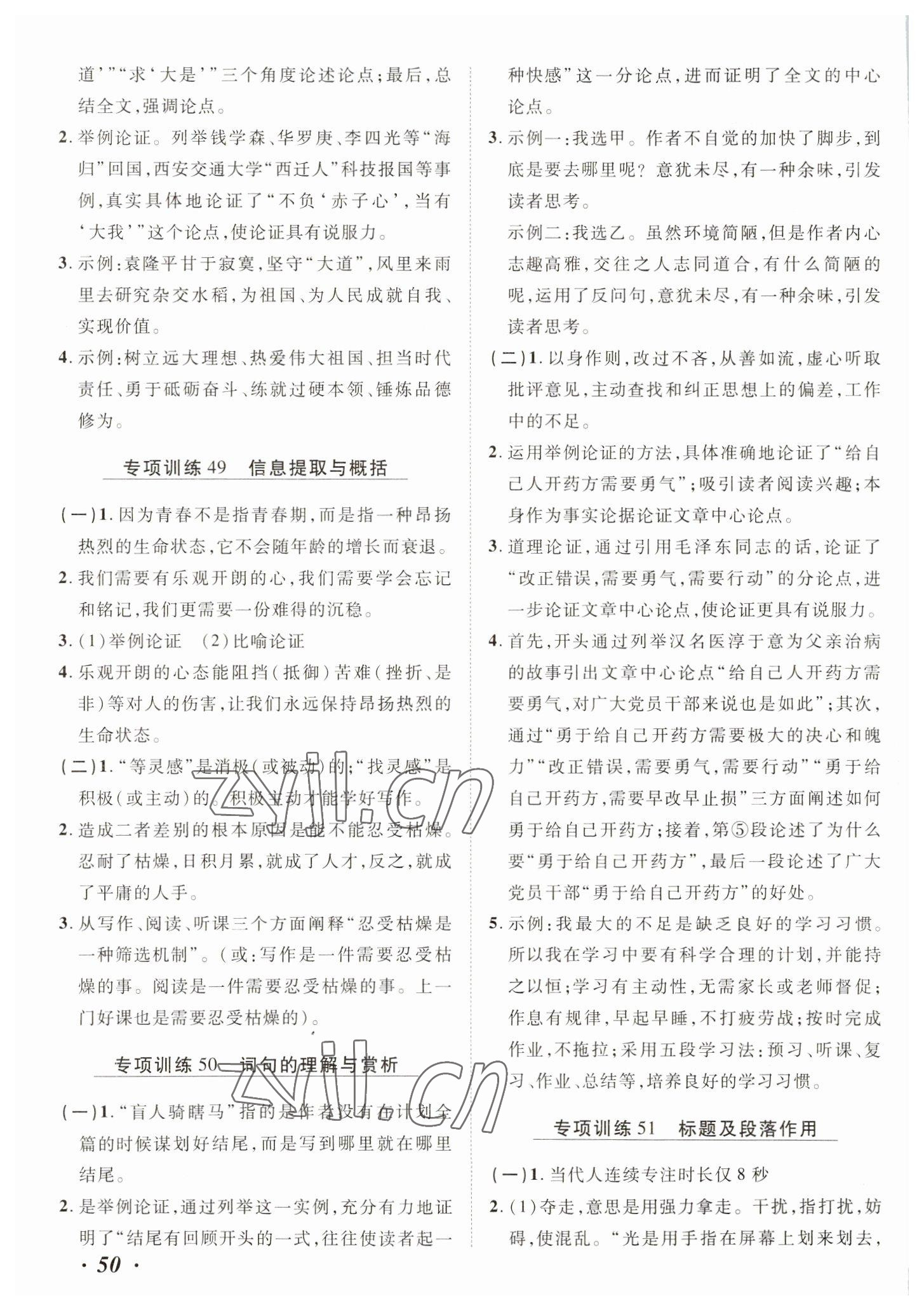 注:目前有些书本章节名称可能整理的还不是很完善,但都是按照顺序排列的,请同学们按照顺序仔细查找。练习册 2023年中考考什么专项课时50练语文 答案主要是用来给同学们做完题方便对答案用的,请勿直接抄袭。
