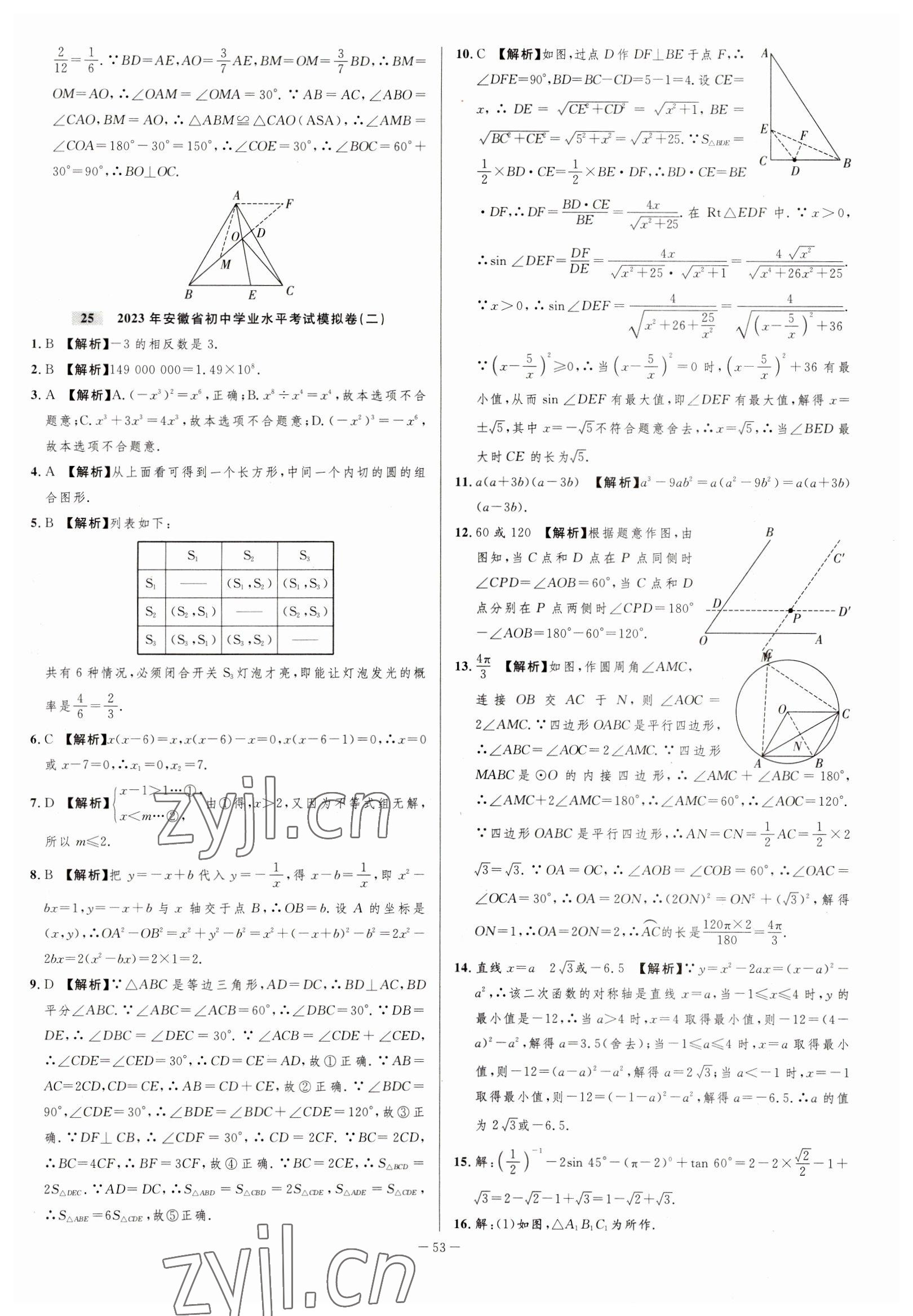 注:目前有些书本章节名称可能整理的还不是很完善,但都是按照顺序排列的,请同学们按照顺序仔细查找。练习册 2023年金卷王中考试题汇编数学安徽专版 答案主要是用来给同学们做完题方便对答案用的,请勿直接抄袭。