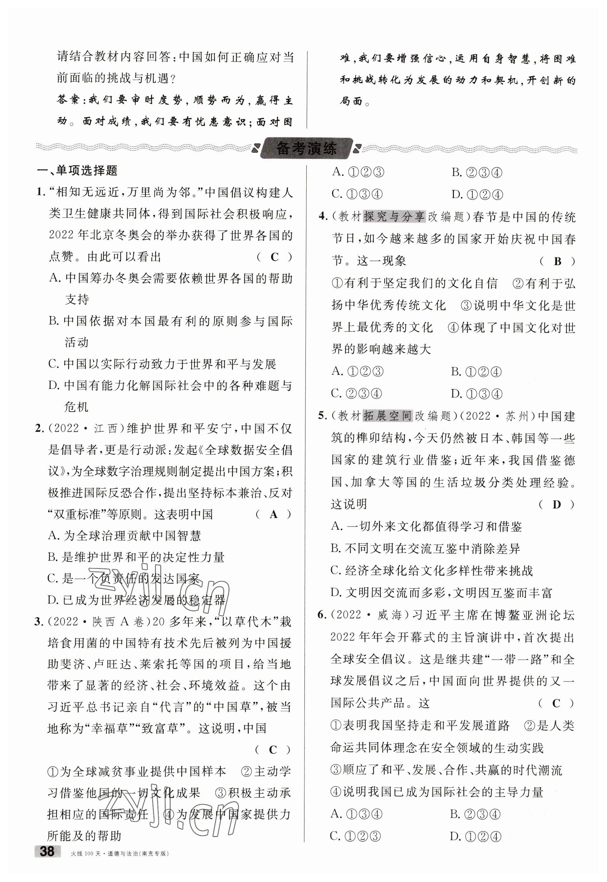 注:目前有些书本章节名称可能整理的还不是很完善,但都是按照顺序排列的,请同学们按照顺序仔细查找。练习册 2023年火线100天中考滚动复习法道德与法治南充专版 答案主要是用来给同学们做完题方便对答案用的,请勿直接抄袭。