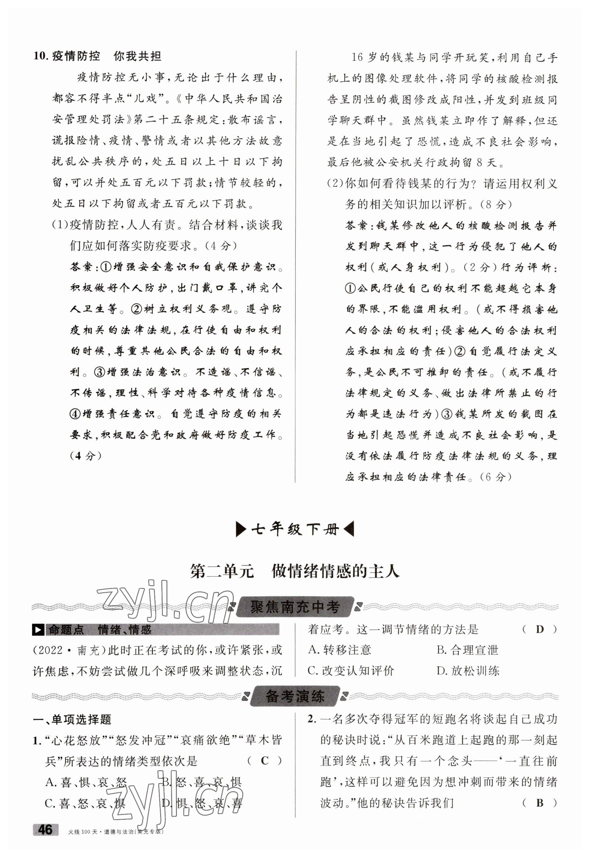 注:目前有些书本章节名称可能整理的还不是很完善,但都是按照顺序排列的,请同学们按照顺序仔细查找。练习册 2023年火线100天中考滚动复习法道德与法治南充专版 答案主要是用来给同学们做完题方便对答案用的,请勿直接抄袭。