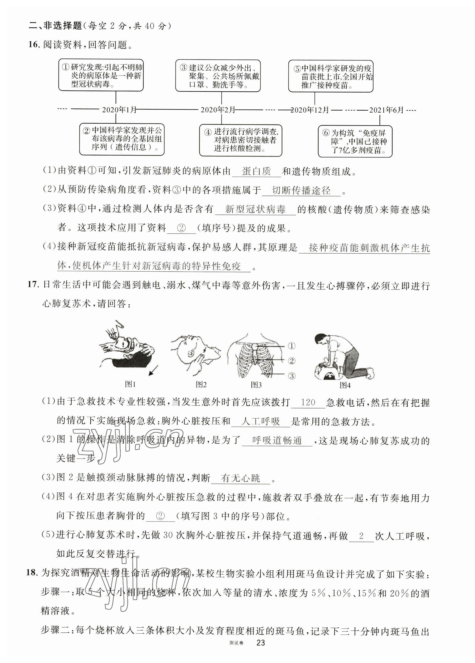 注:目前有些书本章节名称可能整理的还不是很完善,但都是按照顺序排列的,请同学们按照顺序仔细查找。练习册 2023年火线100天中考滚动复习法生物南充专版 答案主要是用来给同学们做完题方便对答案用的,请勿直接抄袭。