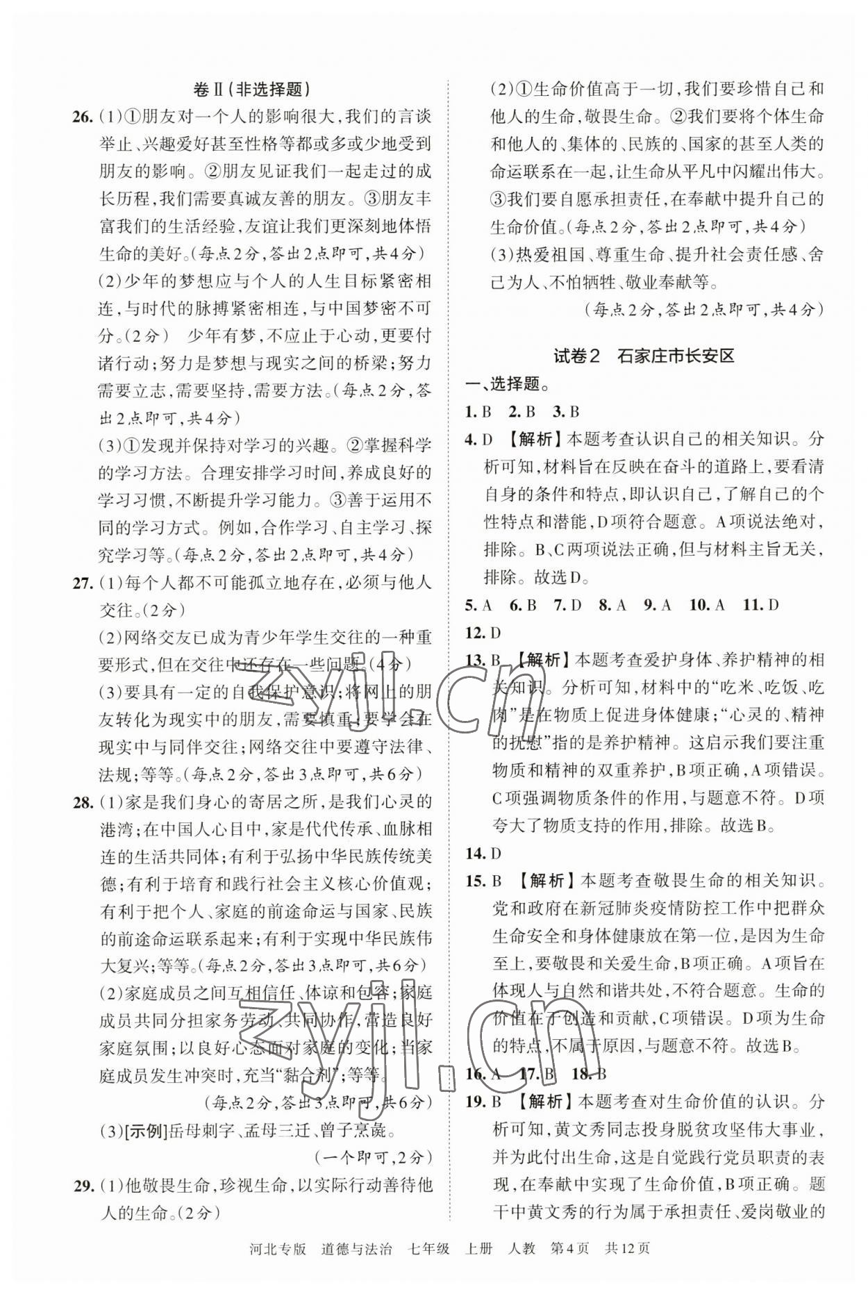 2022年王朝霞各地期末试卷精选七年级道德与法治上册人教版河北专版