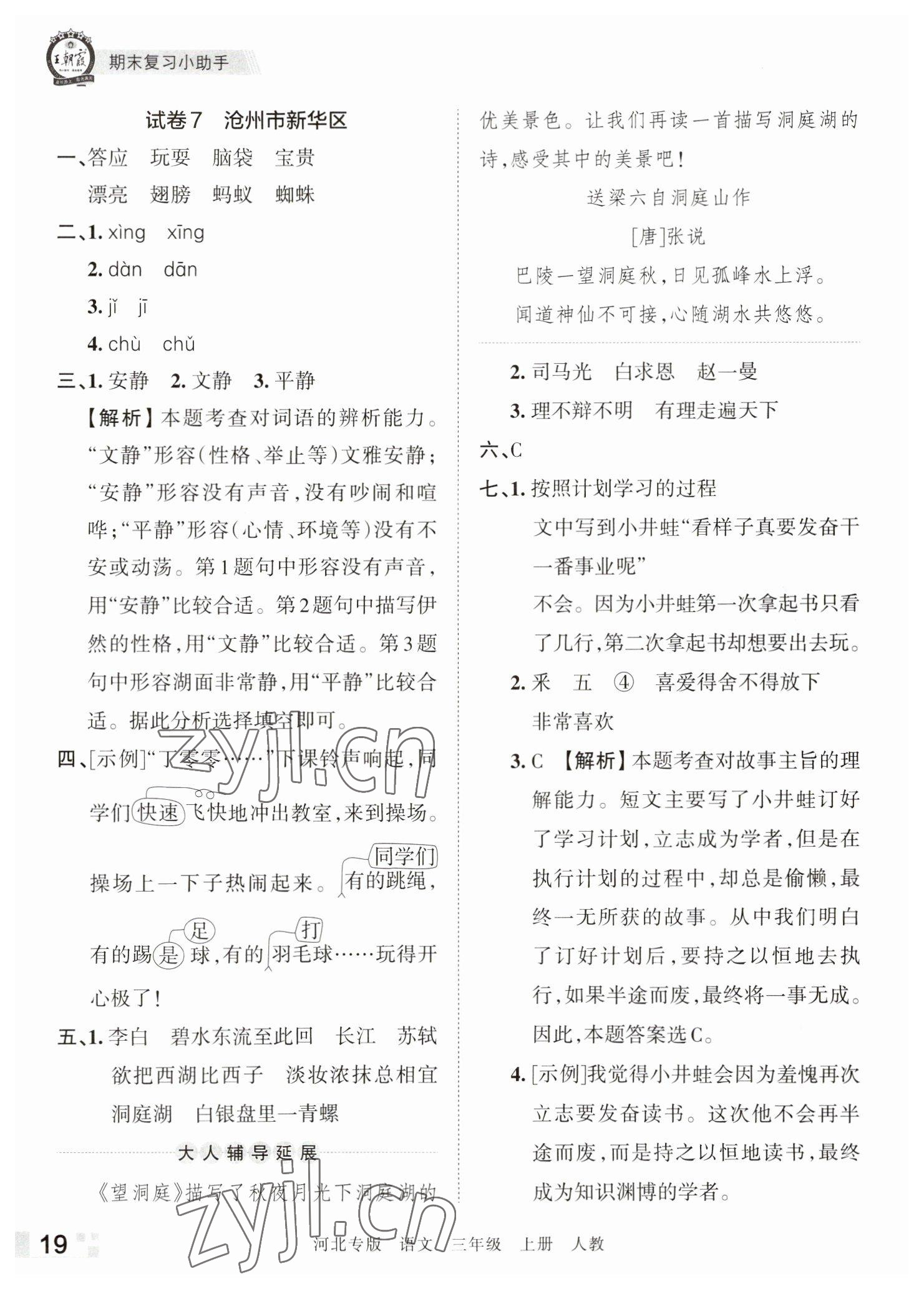 注:目前有些书本章节名称可能整理的还不是很完善,但都是按照顺序排列的,请同学们按照顺序仔细查找。练习册 2022年王朝霞各地期末试卷精选三年级语文上册人教版河北专版 答案主要是用来给同学们做完题方便对答案用的,请勿直接抄袭。