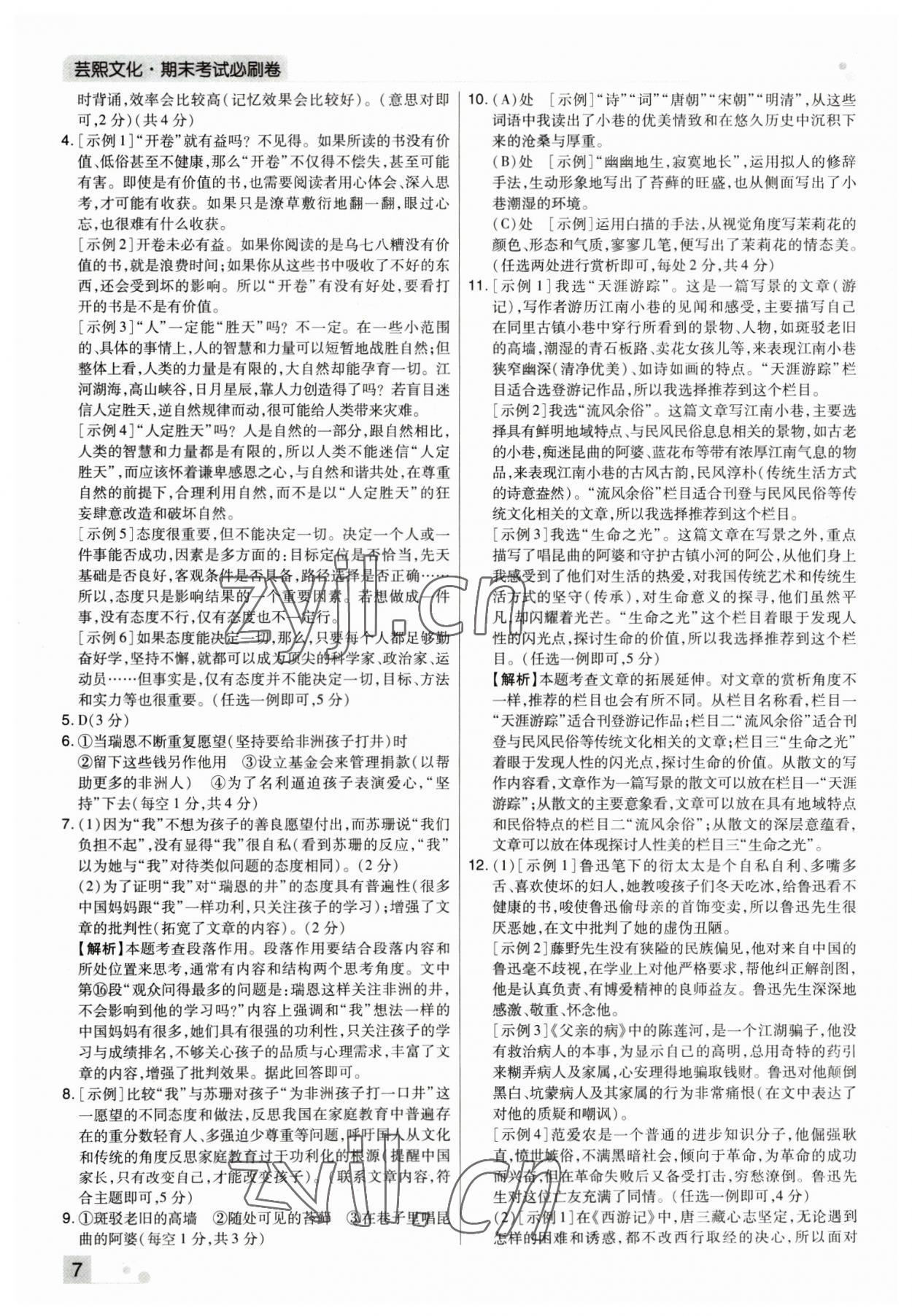 注:目前有些书本章节名称可能整理的还不是很完善,但都是按照顺序排列的,请同学们按照顺序仔细查找。练习册 2022年期末考试必刷卷七年级语文上册人教版郑州专版 答案主要是用来给同学们做完题方便对答案用的,请勿直接抄袭。