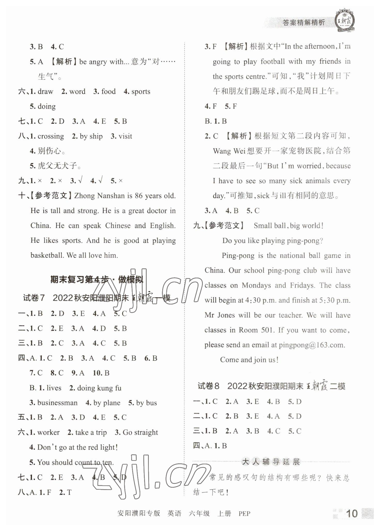 注:目前有些书本章节名称可能整理的还不是很完善,但都是按照顺序排列的,请同学们按照顺序仔细查找。练习册 2022年王朝霞期末真题精编六年级英语上册人教版安濮专版 答案主要是用来给同学们做完题方便对答案用的,请勿直接抄袭。