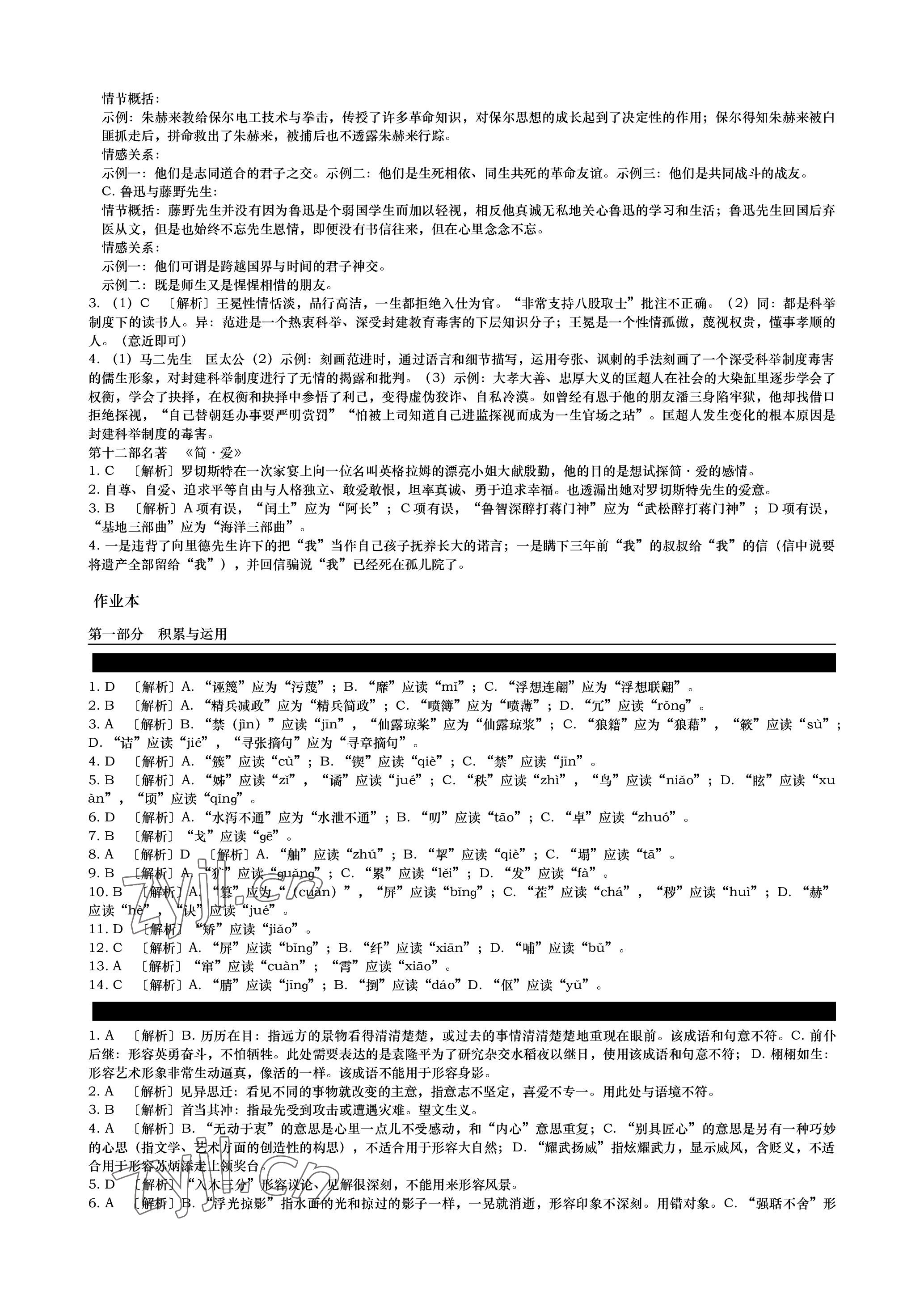 注:目前有些书本章节名称可能整理的还不是很完善,但都是按照顺序排列的,请同学们按照顺序仔细查找。练习册 2023年春如金卷中考语文 答案主要是用来给同学们做完题方便对答案用的,请勿直接抄袭。