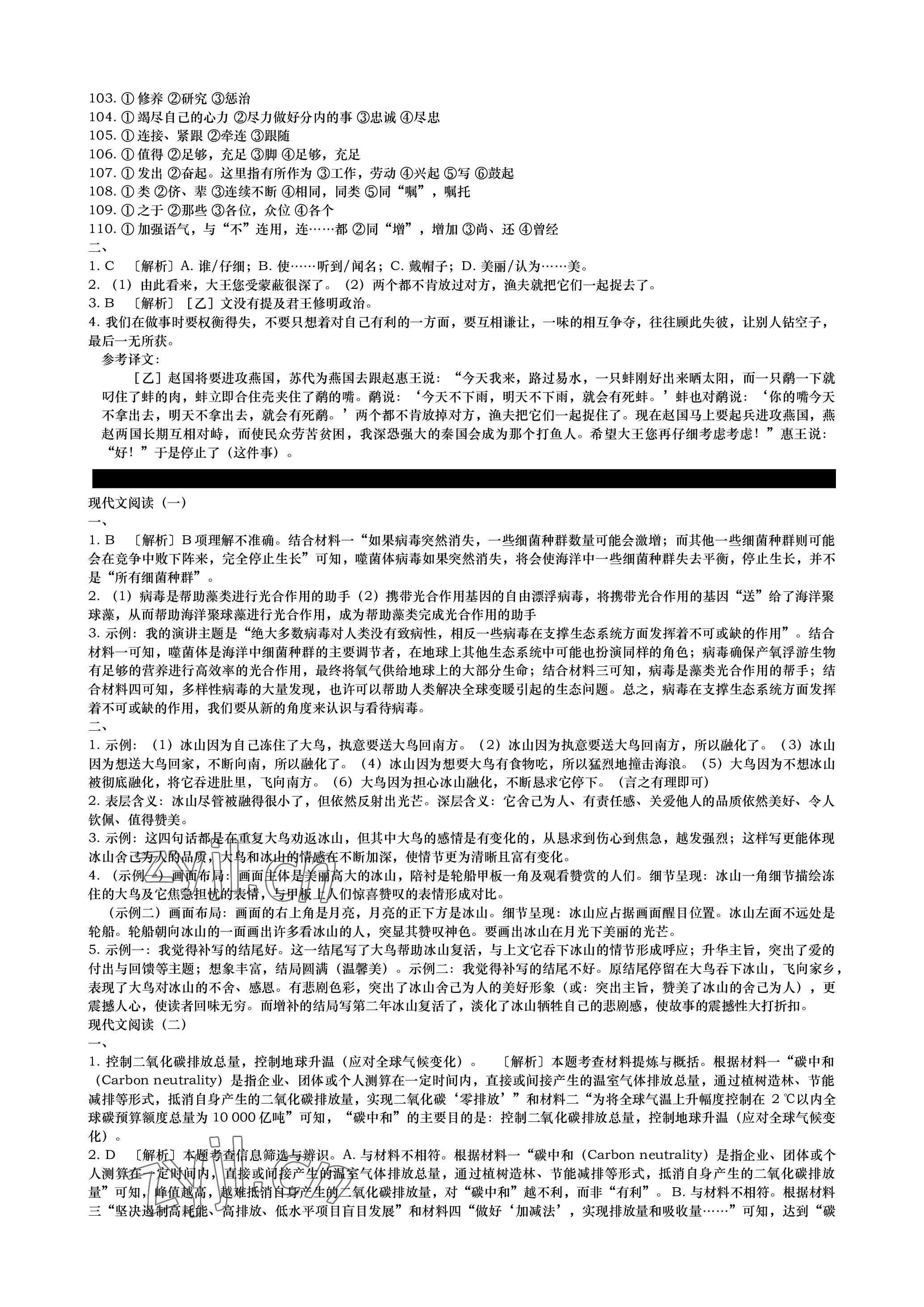 注:目前有些书本章节名称可能整理的还不是很完善,但都是按照顺序排列的,请同学们按照顺序仔细查找。练习册 2023年春如金卷中考语文 答案主要是用来给同学们做完题方便对答案用的,请勿直接抄袭。