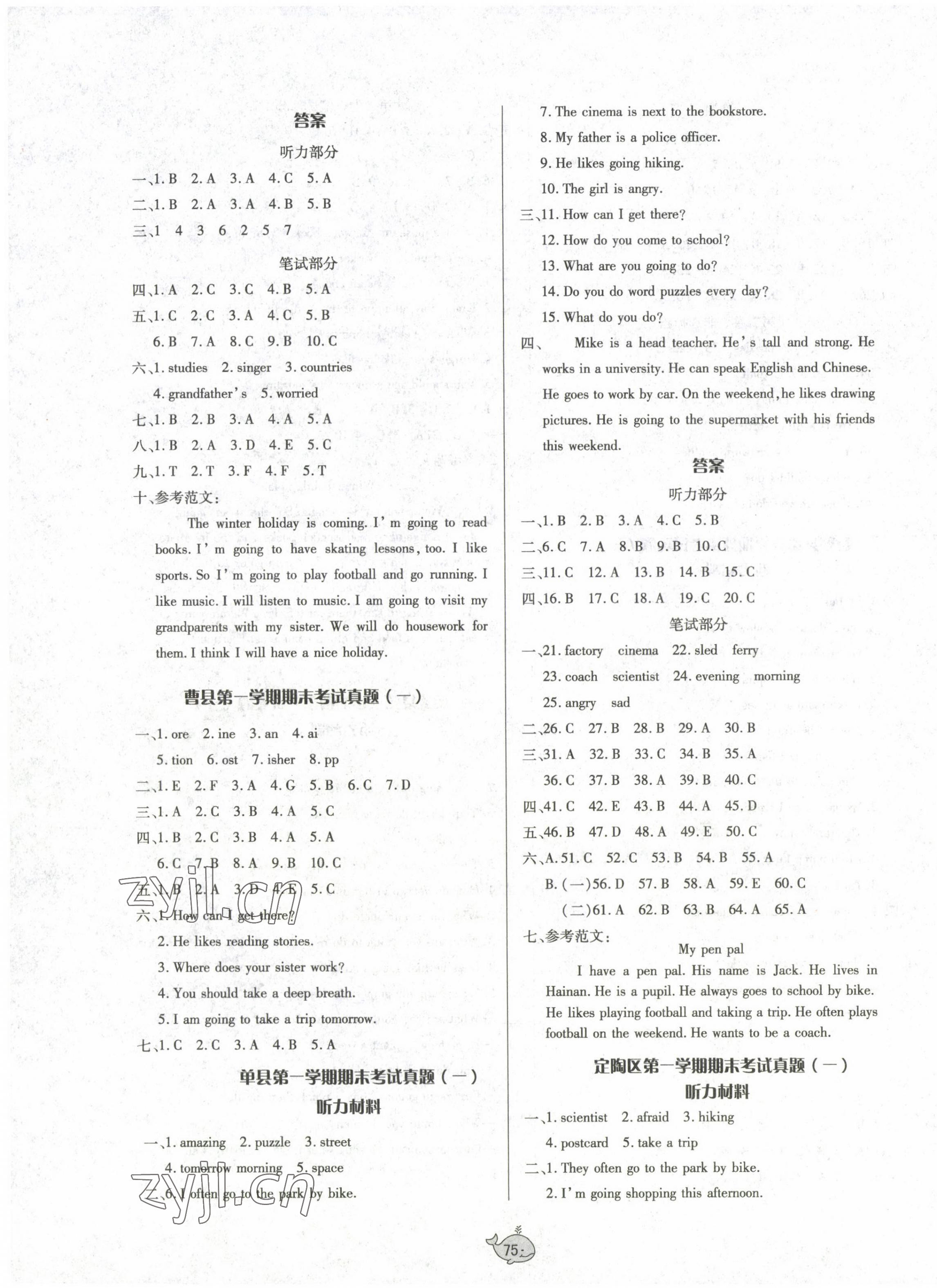 注:目前有些书本章节名称可能整理的还不是很完善,但都是按照顺序排列的,请同学们按照顺序仔细查找。练习册 2022年菏泽真题汇编六年级英语上册人教PEP版 答案主要是用来给同学们做完题方便对答案用的,请勿直接抄袭。