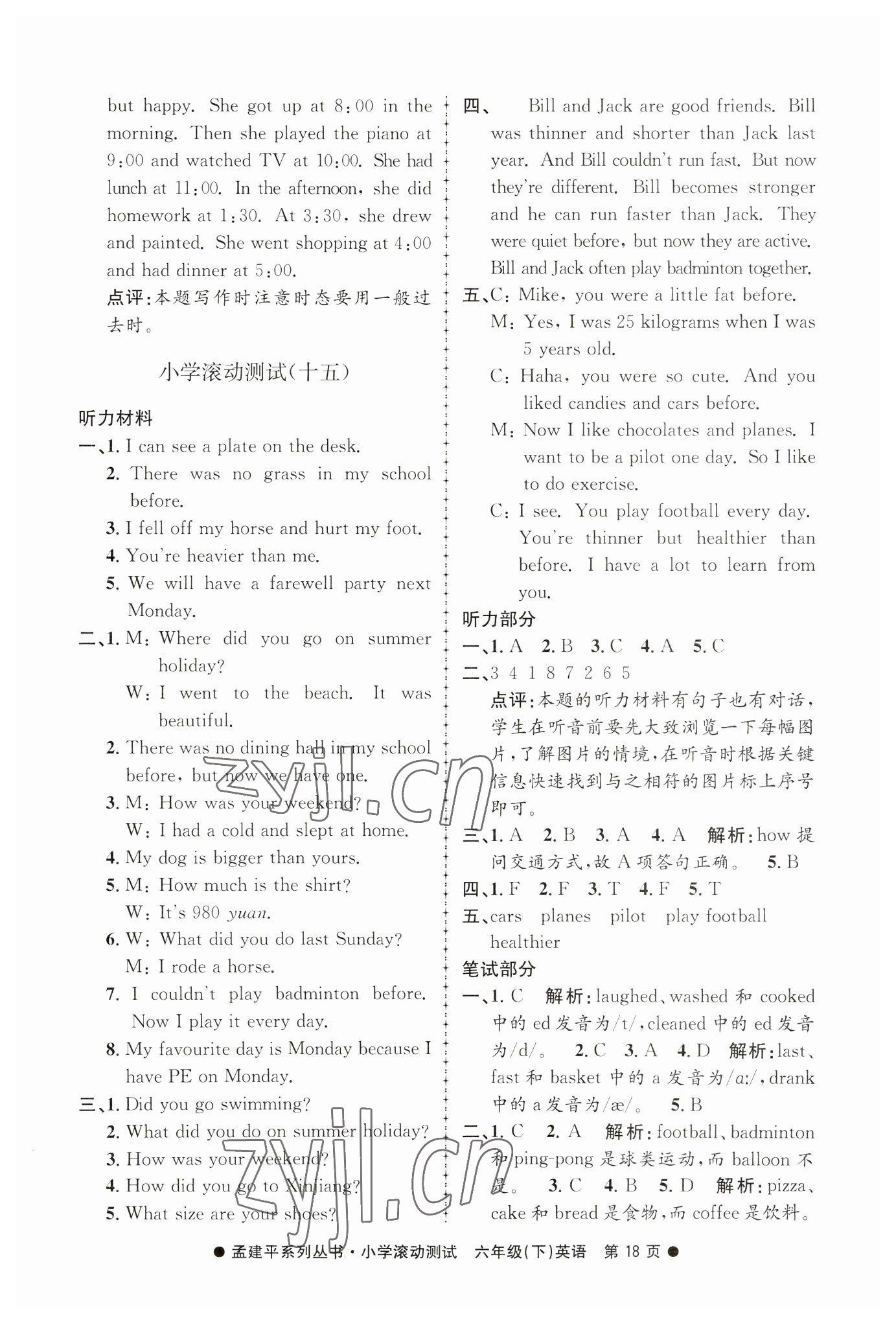 注:目前有些书本章节名称可能整理的还不是很完善,但都是按照顺序排列的,请同学们按照顺序仔细查找。练习册 2023年孟建平小学滚动测试六年级英语下册 答案主要是用来给同学们做完题方便对答案用的,请勿直接抄袭。