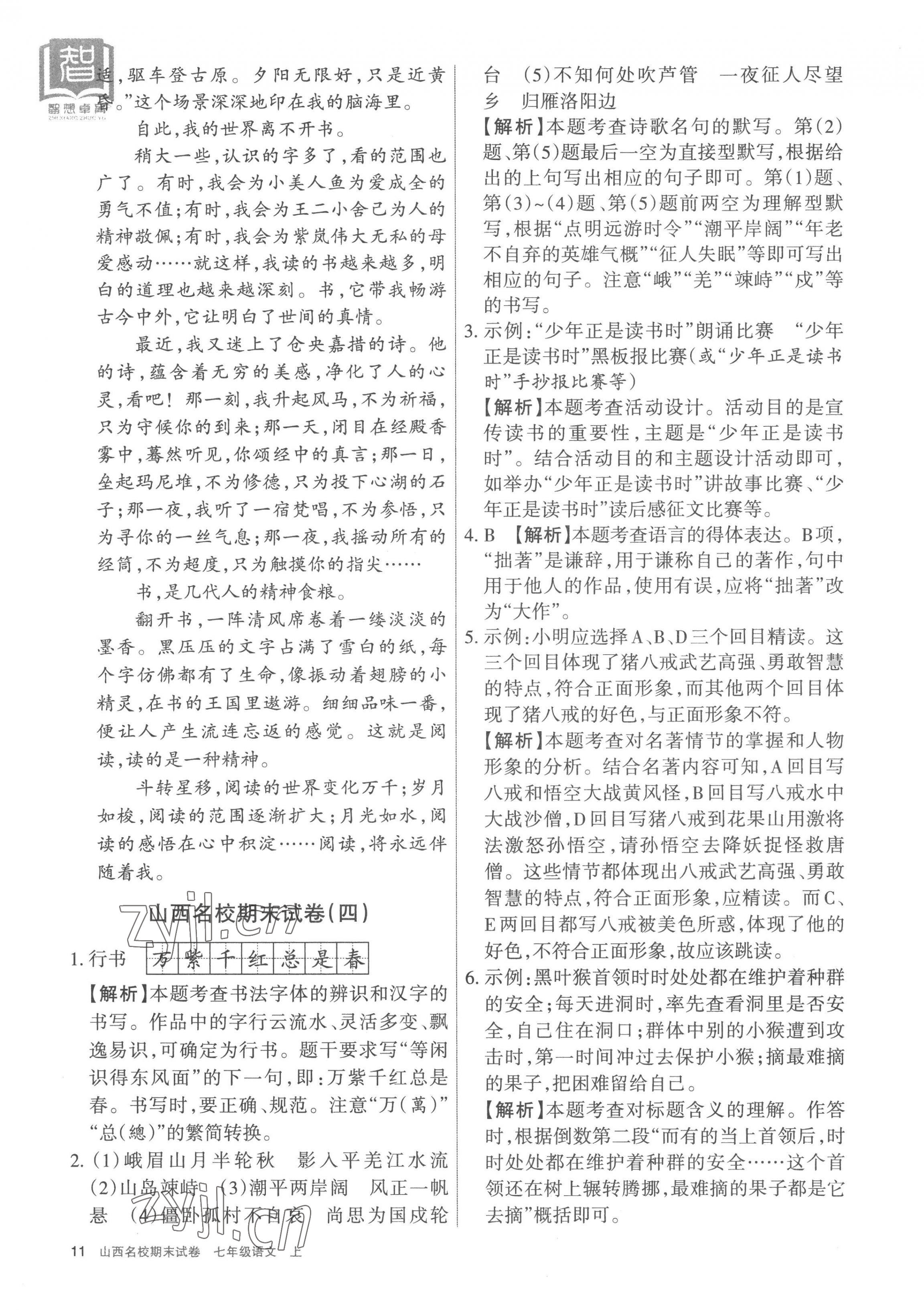 注:目前有些书本章节名称可能整理的还不是很完善,但都是按照顺序排列的,请同学们按照顺序仔细查找。练习册 2022年山西名校期末试卷七年级语文上册人教版 答案主要是用来给同学们做完题方便对答案用的,请勿直接抄袭。