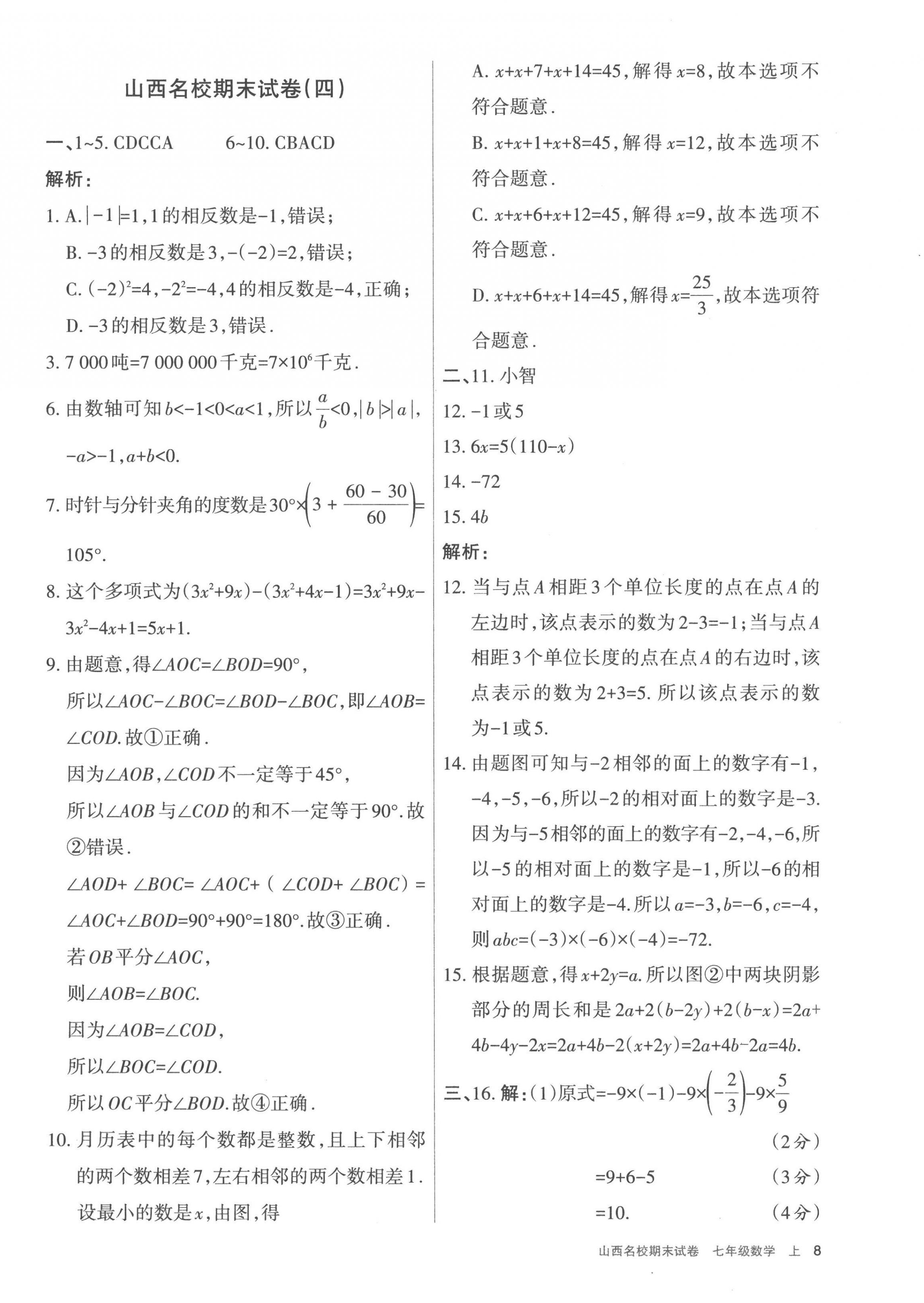注:目前有些书本章节名称可能整理的还不是很完善,但都是按照顺序排列的,请同学们按照顺序仔细查找。练习册 2022年山西名校期末试卷七年级数学上册人教版 答案主要是用来给同学们做完题方便对答案用的,请勿直接抄袭。