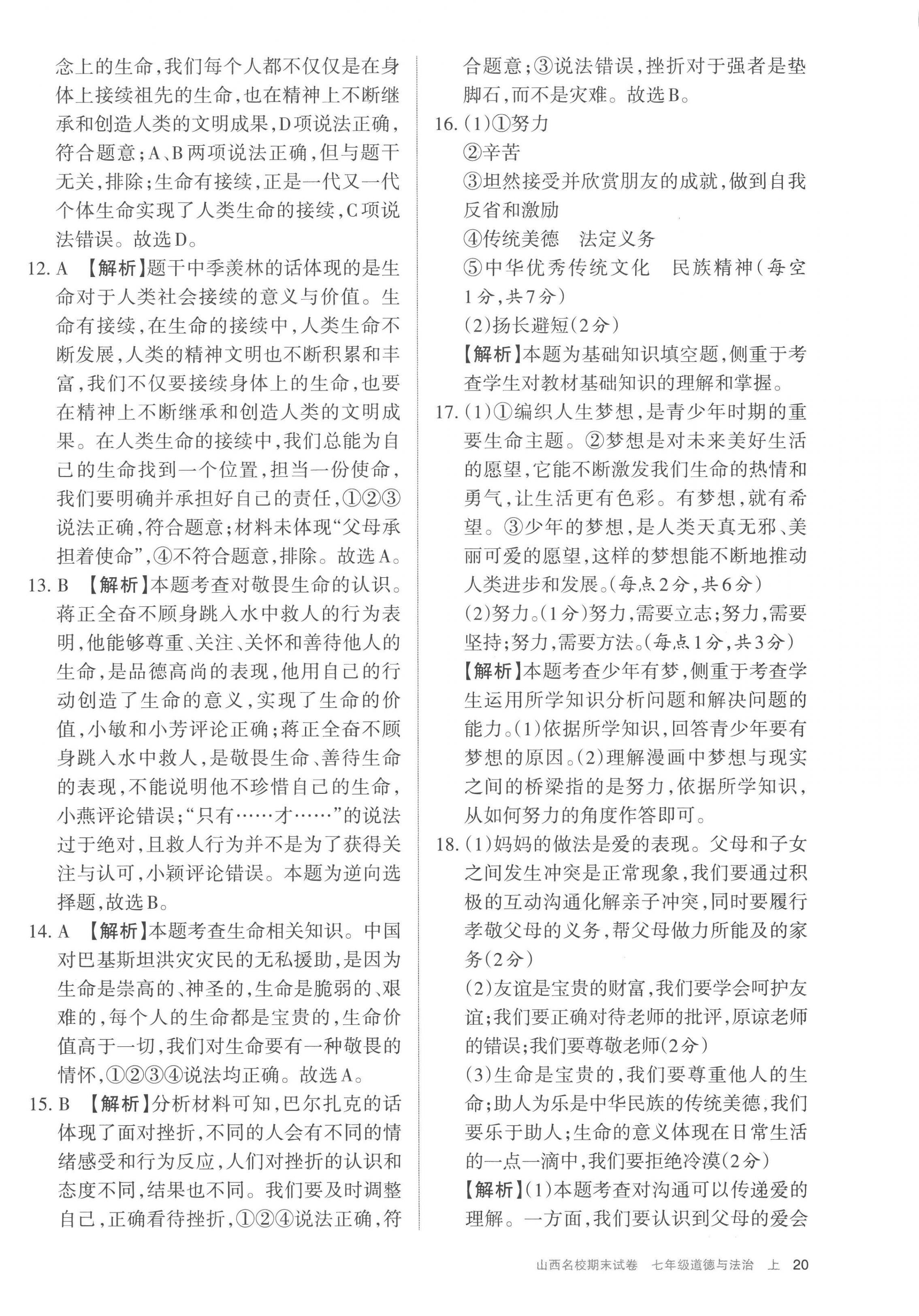 注:目前有些书本章节名称可能整理的还不是很完善,但都是按照顺序排列的,请同学们按照顺序仔细查找。练习册 2022年山西名校期末试卷七年级道德与法治上册人教版 答案主要是用来给同学们做完题方便对答案用的,请勿直接抄袭。