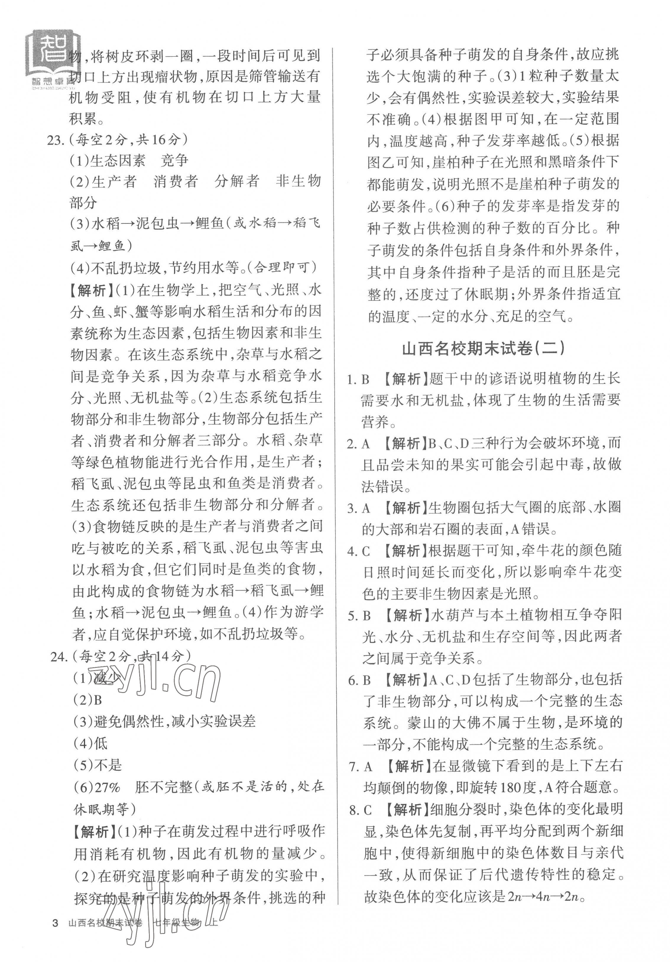 注:目前有些书本章节名称可能整理的还不是很完善,但都是按照顺序排列的,请同学们按照顺序仔细查找。练习册 2022年山西名校期末试卷七年级生物上册人教版 答案主要是用来给同学们做完题方便对答案用的,请勿直接抄袭。