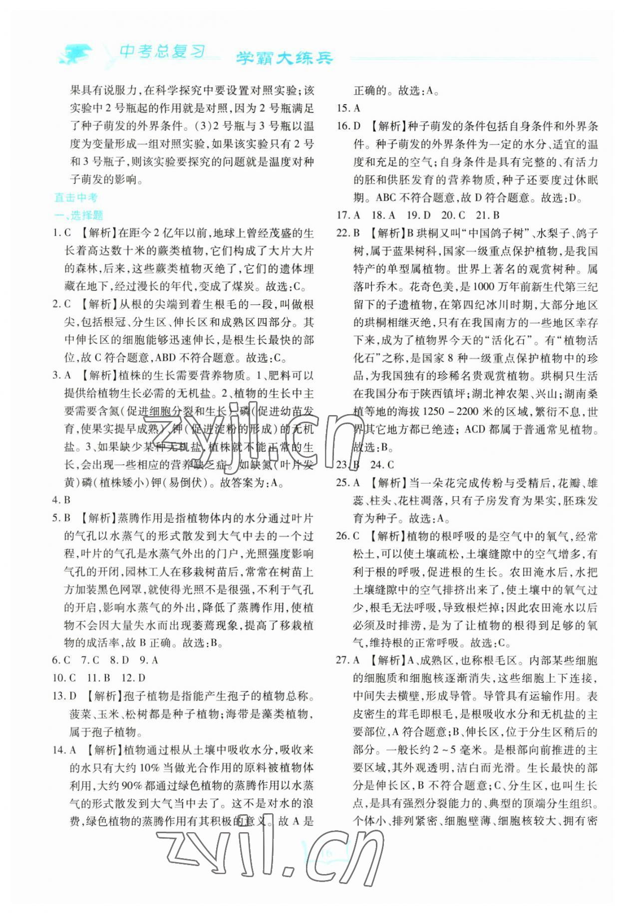 注:目前有些书本章节名称可能整理的还不是很完善,但都是按照顺序排列的,请同学们按照顺序仔细查找。练习册 2023年智囊团中考总复习生物中考人教版 答案主要是用来给同学们做完题方便对答案用的,请勿直接抄袭。