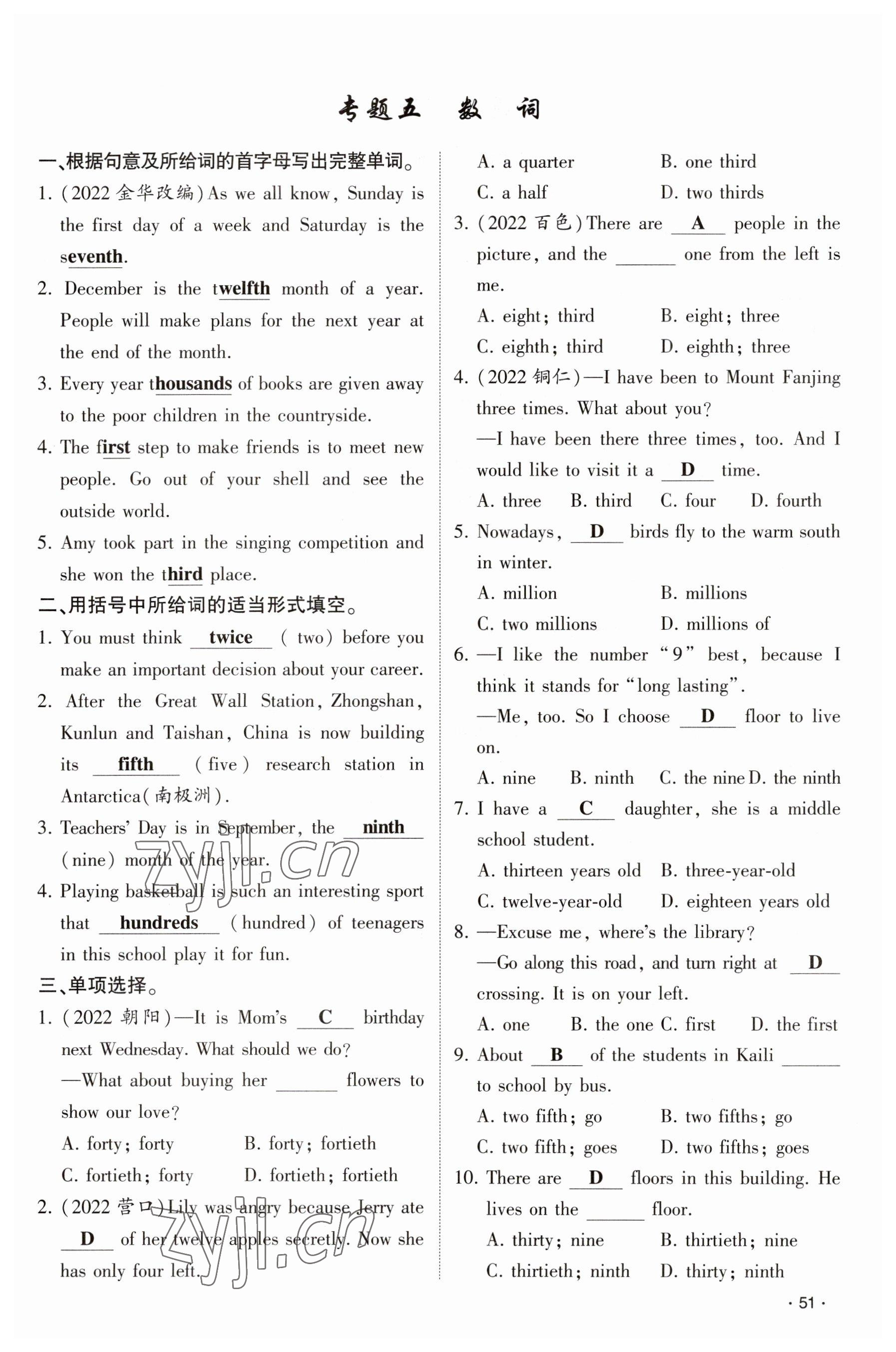 - 参考答案第51页