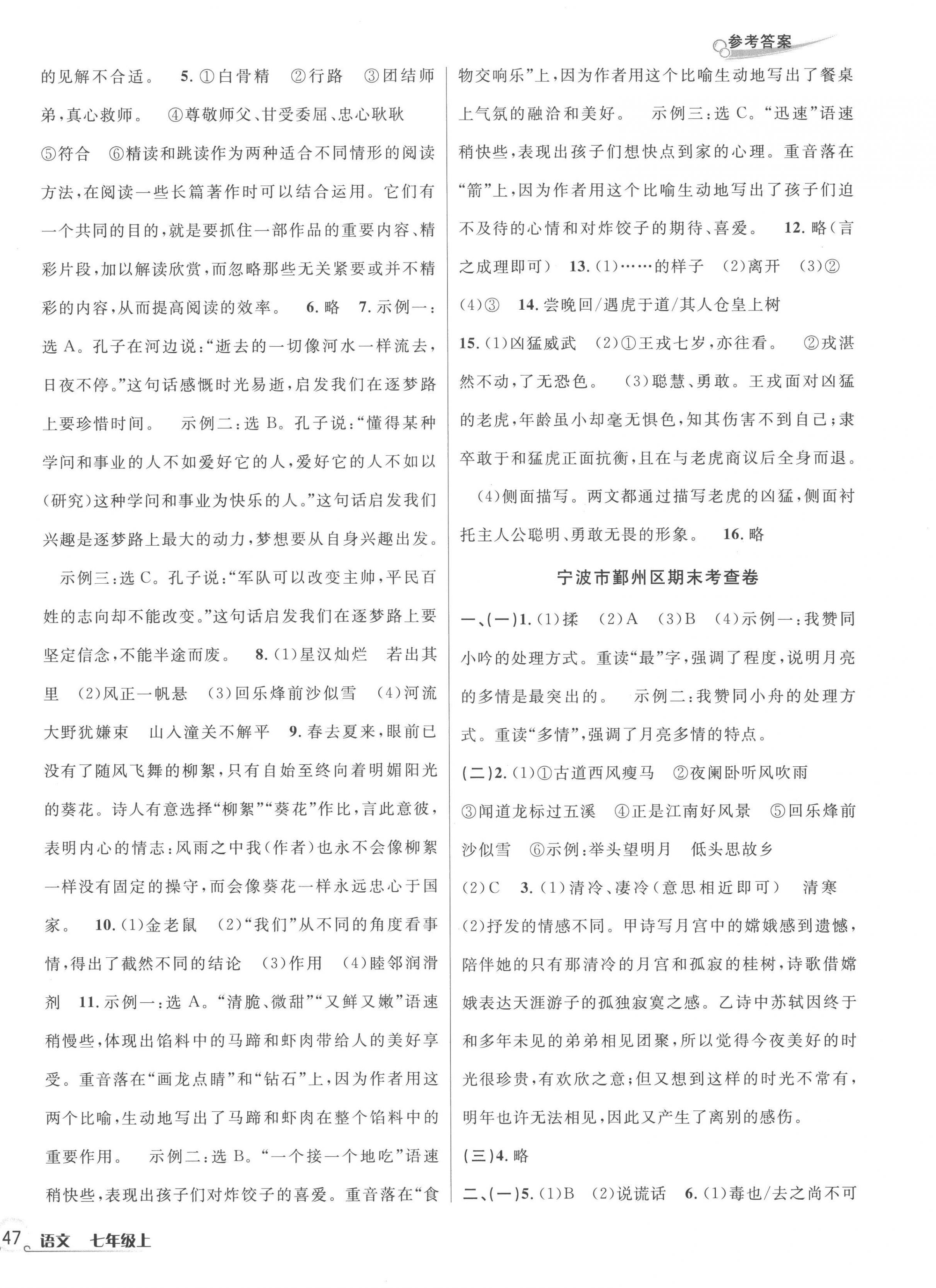 注:目前有些书本章节名称可能整理的还不是很完善,但都是按照顺序排列的,请同学们按照顺序仔细查找。练习册 2022年各地期末名卷精选七年级语文上册人教版 答案主要是用来给同学们做完题方便对答案用的,请勿直接抄袭。