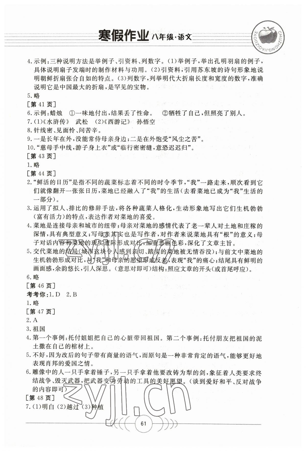 2023年寒假作业八年级语文华中科技大学出版社