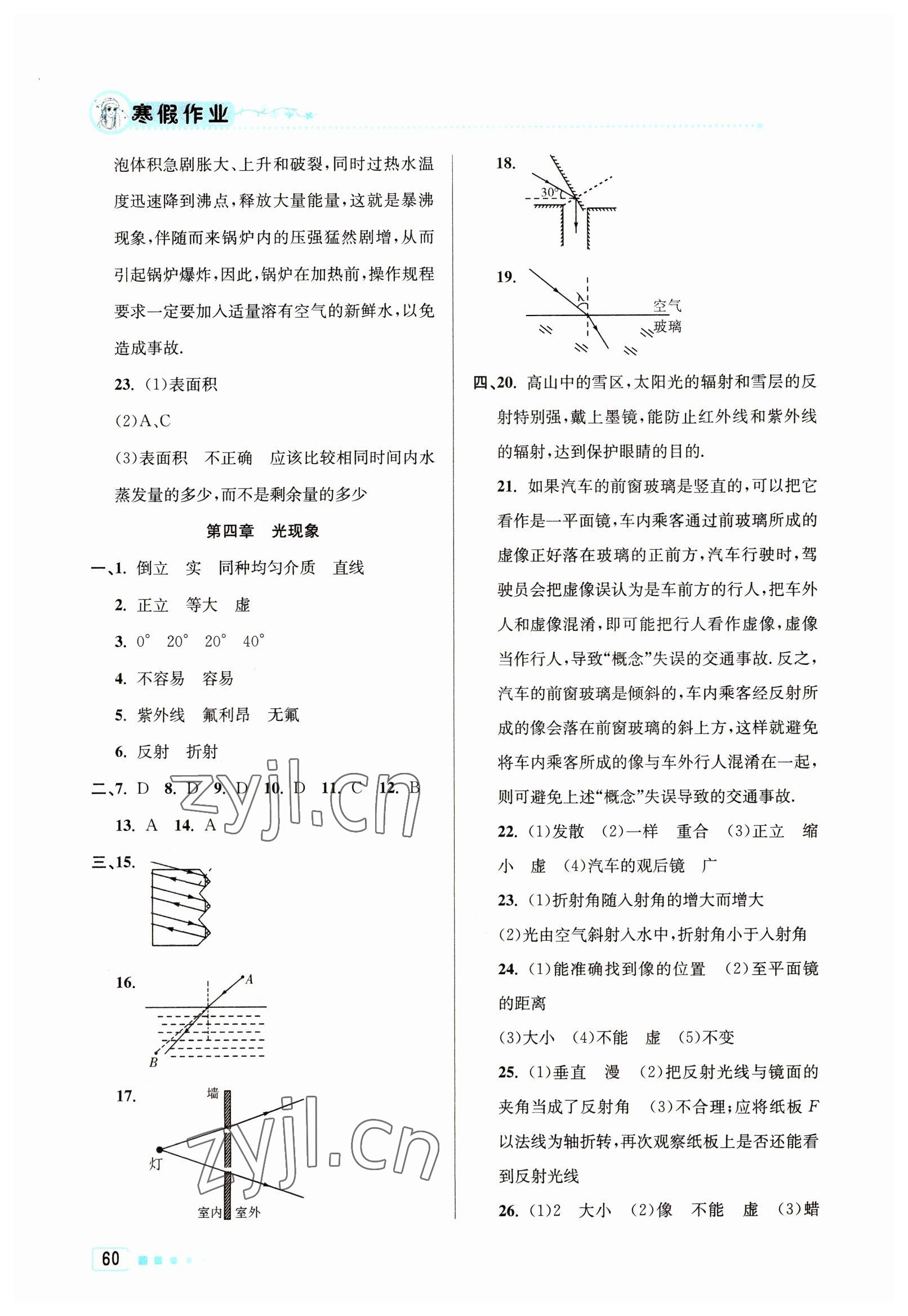 2023年寒假作业八年级物理北京教育出版社