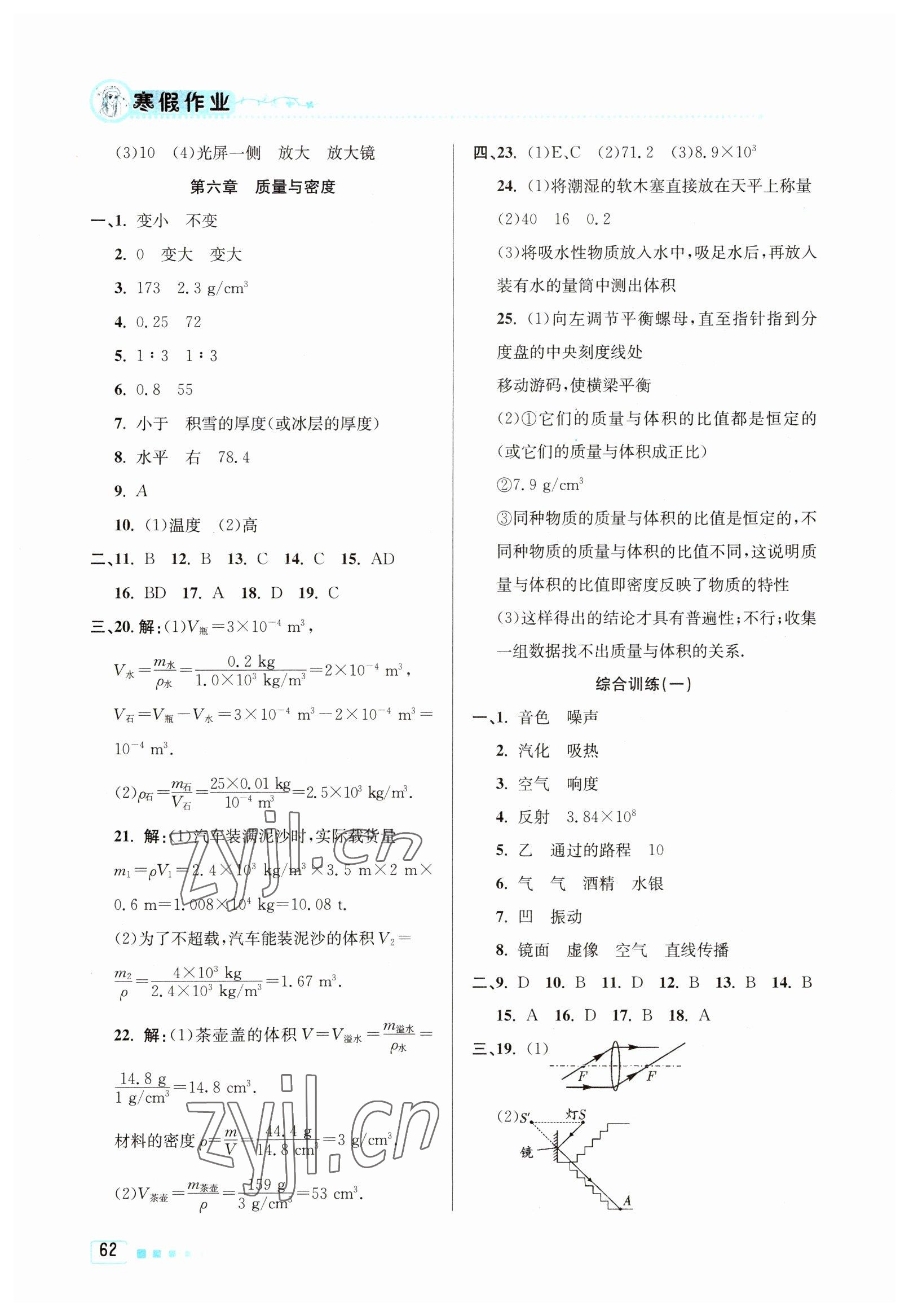 2023年寒假作业八年级物理北京教育出版社