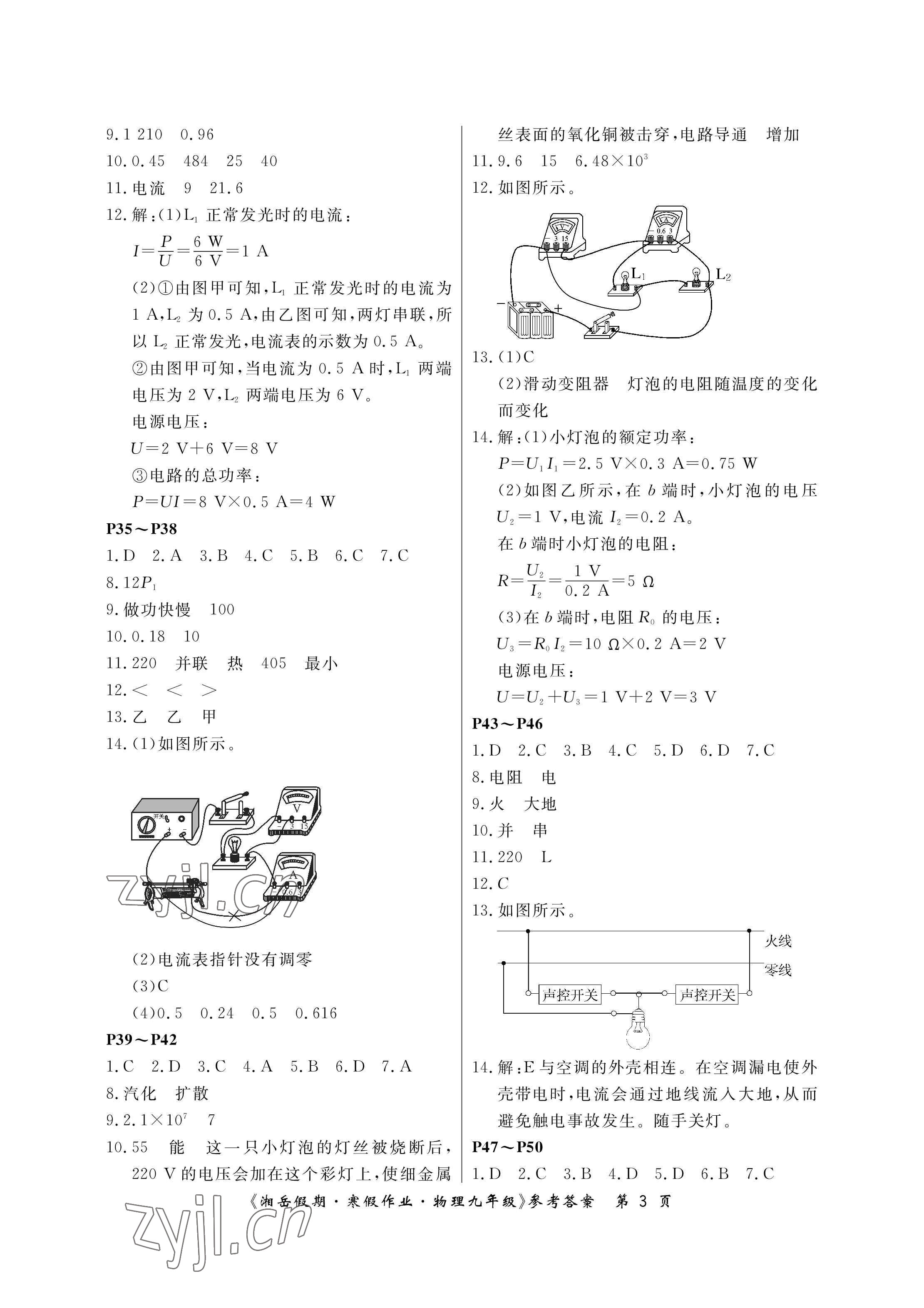 2023年湘岳假期寒假作业九年级物理人教版第二版
