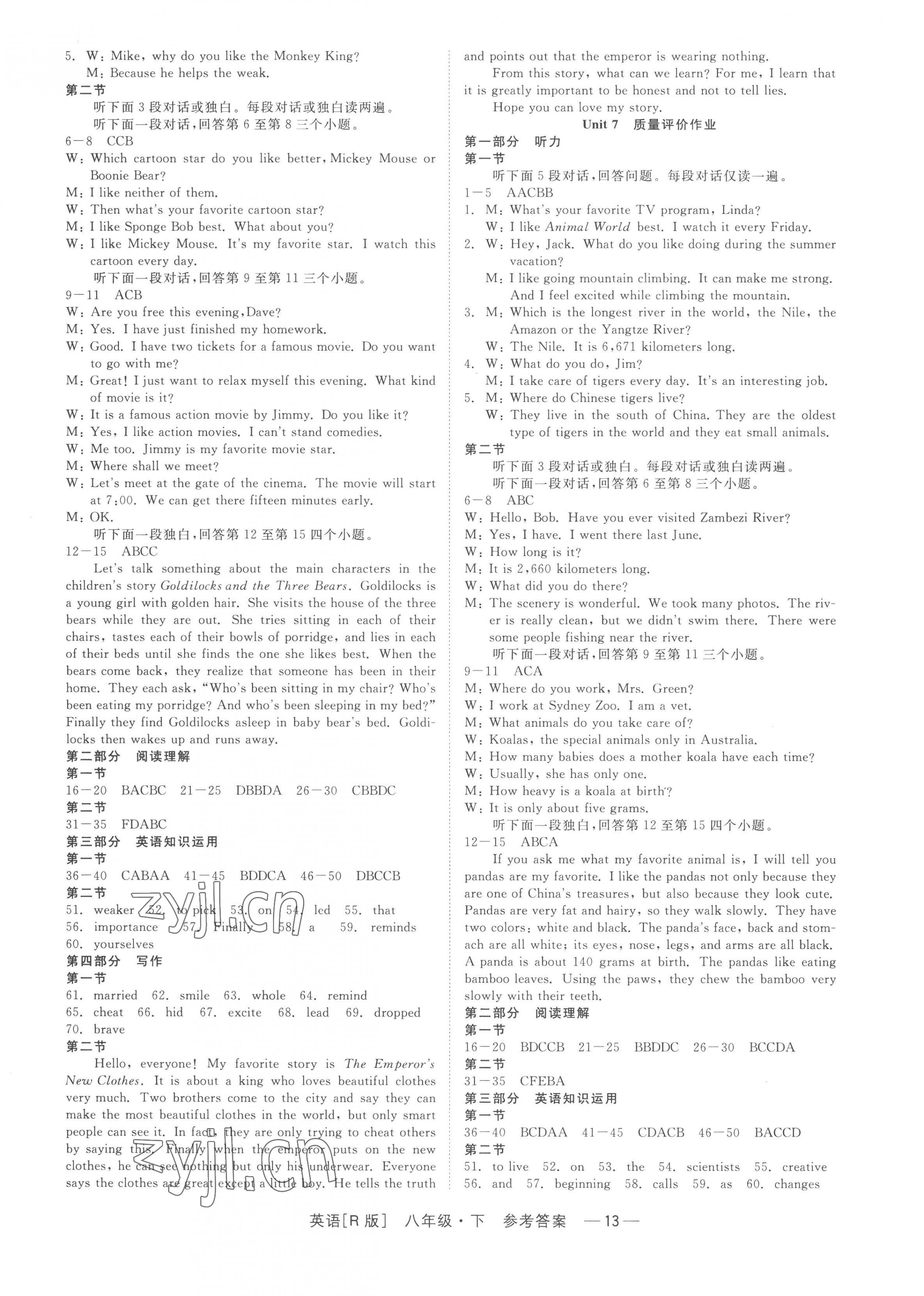 注:目前有些书本章节名称可能整理的还不是很完善,但都是按照顺序排列的,请同学们按照顺序仔细查找。练习册 2023年精彩练习就练这一本八年级英语下册人教版杭州专版 答案主要是用来给同学们做完题方便对答案用的,请勿直接抄袭。