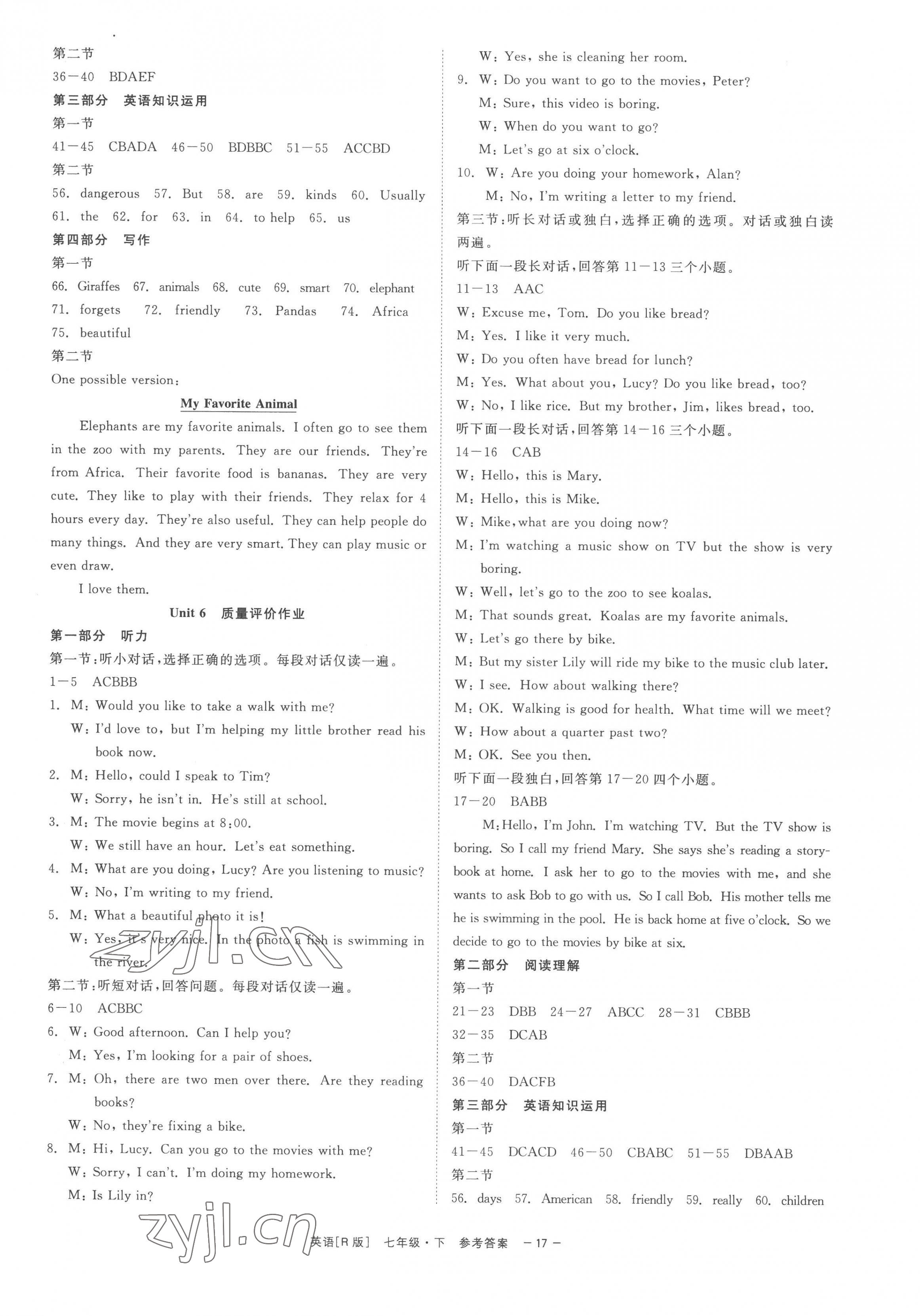 注:目前有些书本章节名称可能整理的还不是很完善,但都是按照顺序排列的,请同学们按照顺序仔细查找。练习册 2023年精彩练习就练这一本七年级英语下册人教版杭州专版 答案主要是用来给同学们做完题方便对答案用的,请勿直接抄袭。