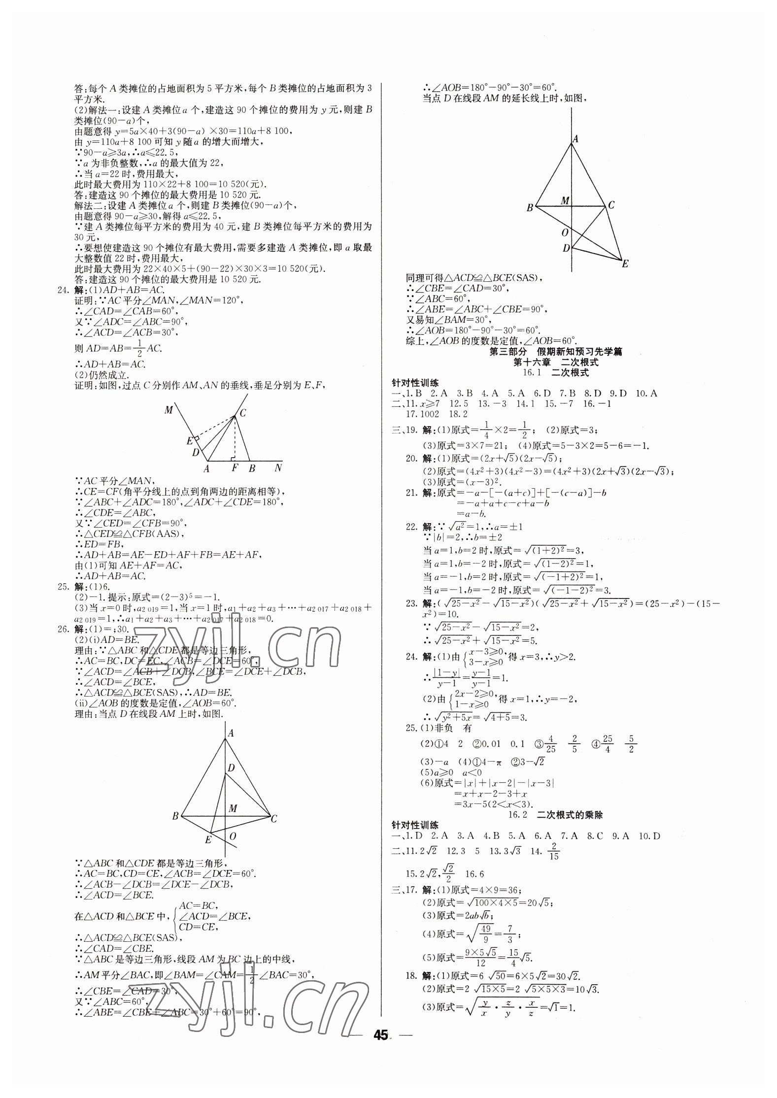 注:目前有些书本章节名称可能整理的还不是很完善,但都是按照顺序排列的,请同学们按照顺序仔细查找。练习册 2023年自主学习赢在假期八年级数学人教版 答案主要是用来给同学们做完题方便对答案用的,请勿直接抄袭。