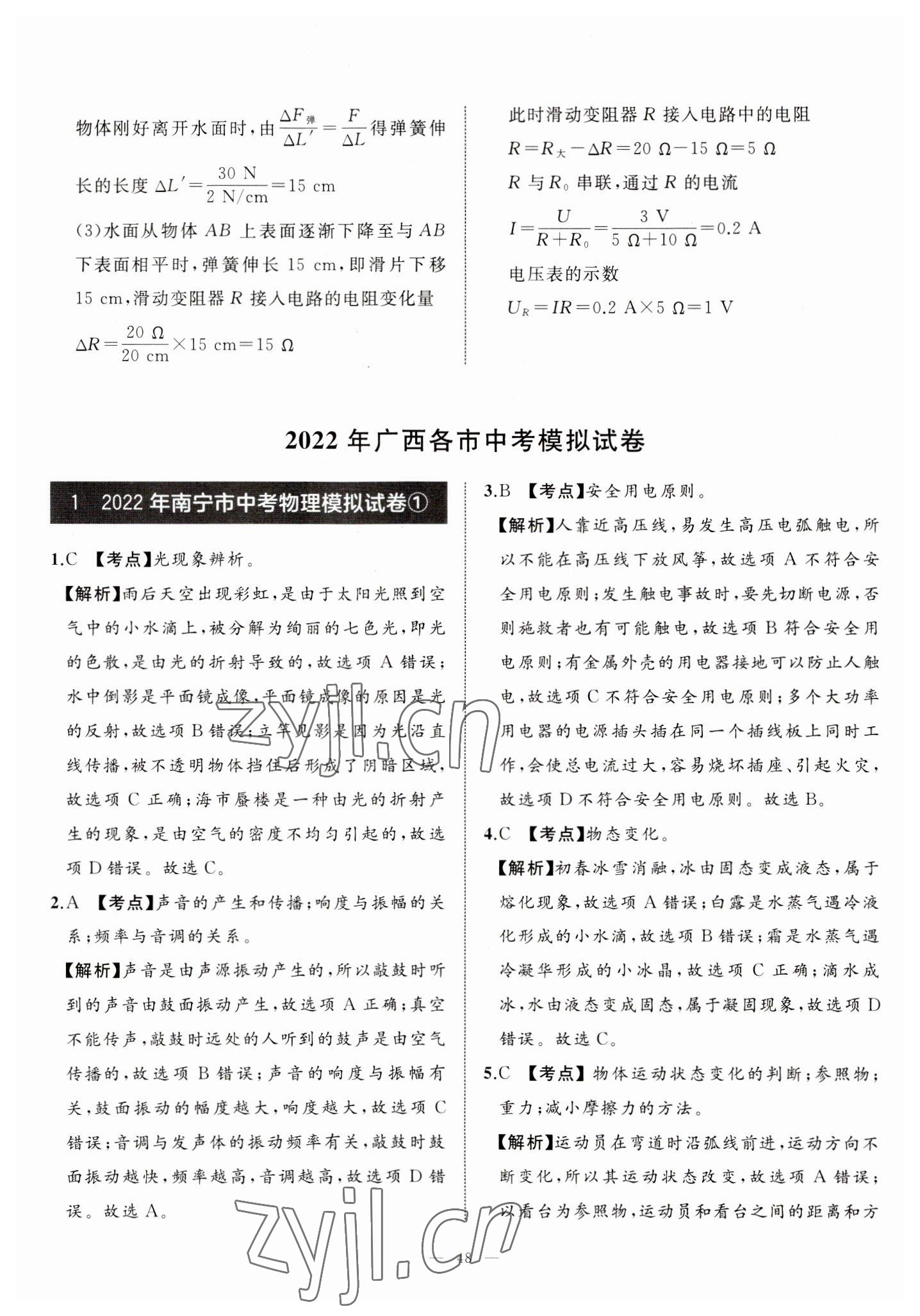 2023年中考备考指南广西2年真题1年模拟试卷物理