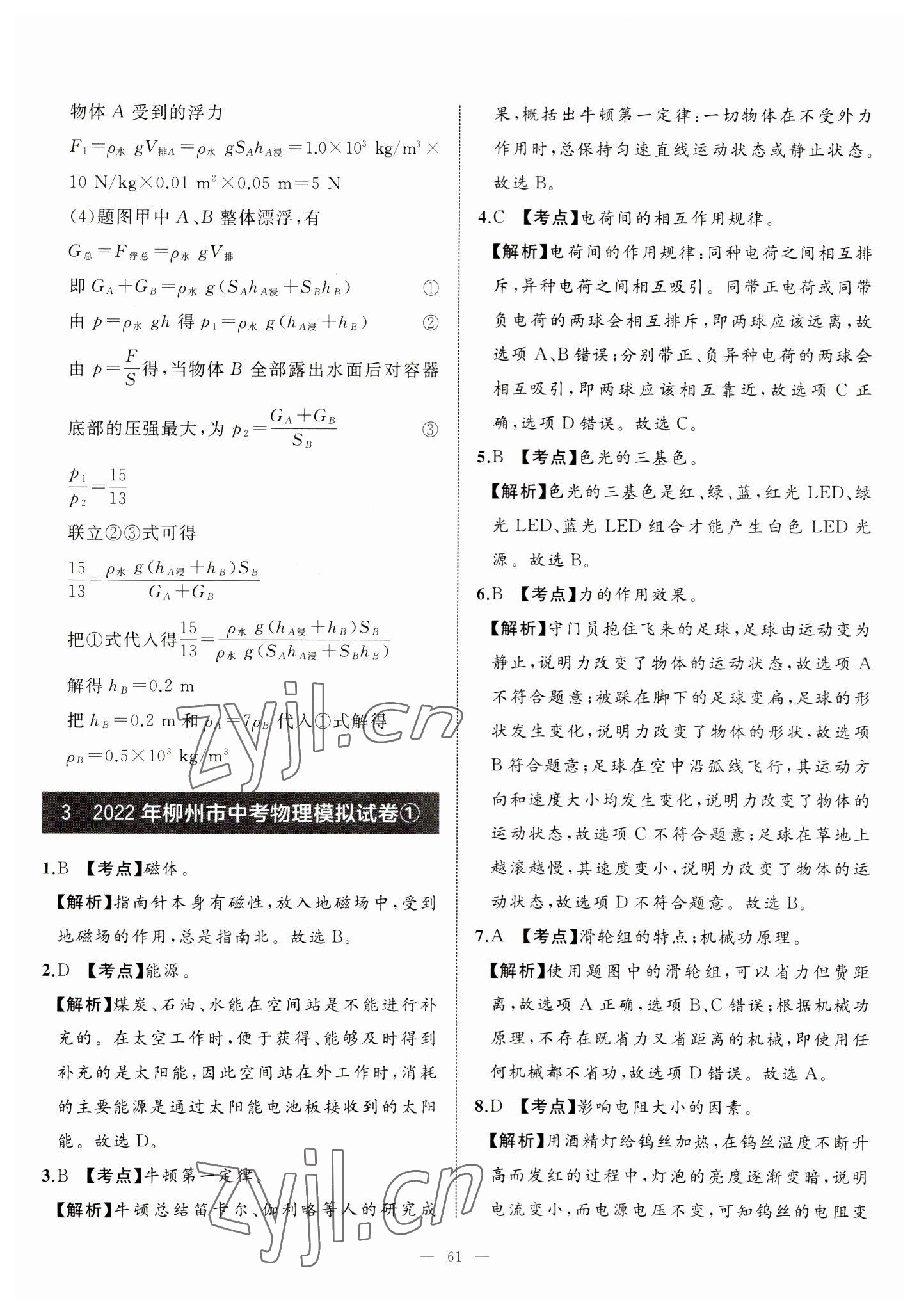 注:目前有些书本章节名称可能整理的还不是很完善,但都是按照顺序排列的,请同学们按照顺序仔细查找。练习册 2023年中考备考指南广西2年真题1年模拟试卷物理 答案主要是用来给同学们做完题方便对答案用的,请勿直接抄袭。