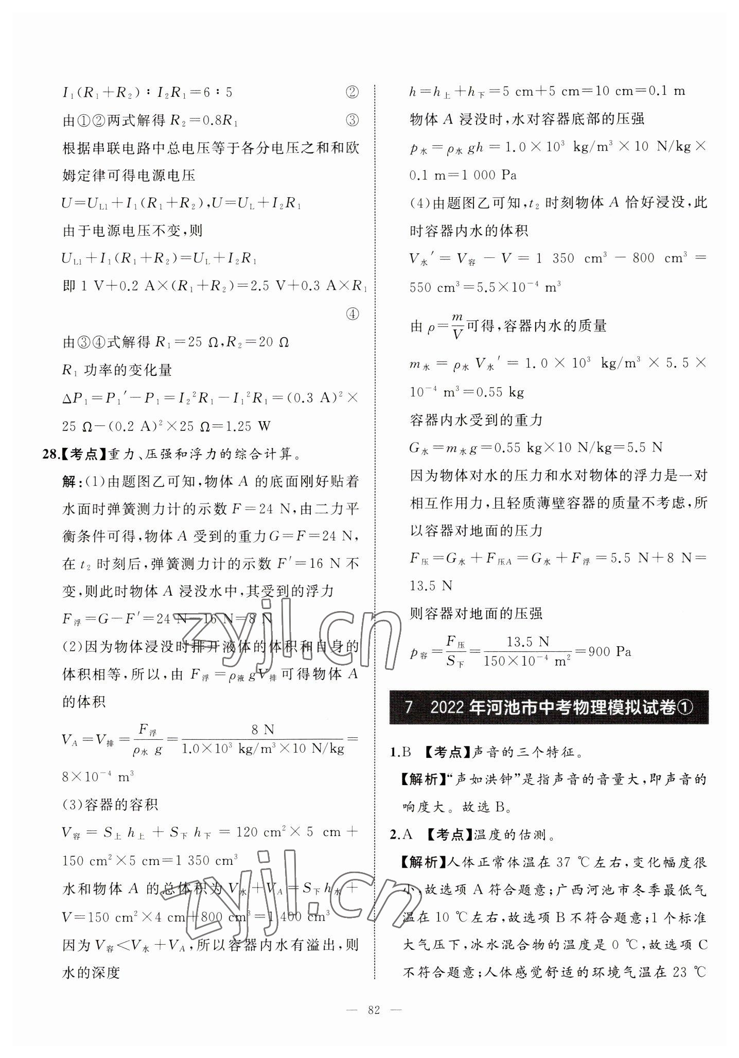 2023年中考备考指南广西2年真题1年模拟试卷物理