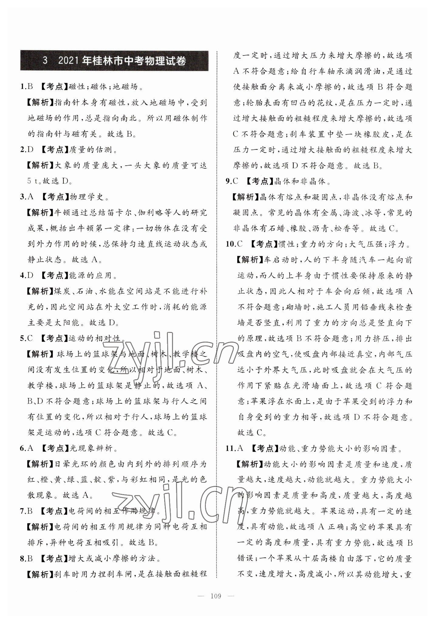 2023年中考备考指南广西2年真题1年模拟试卷物理