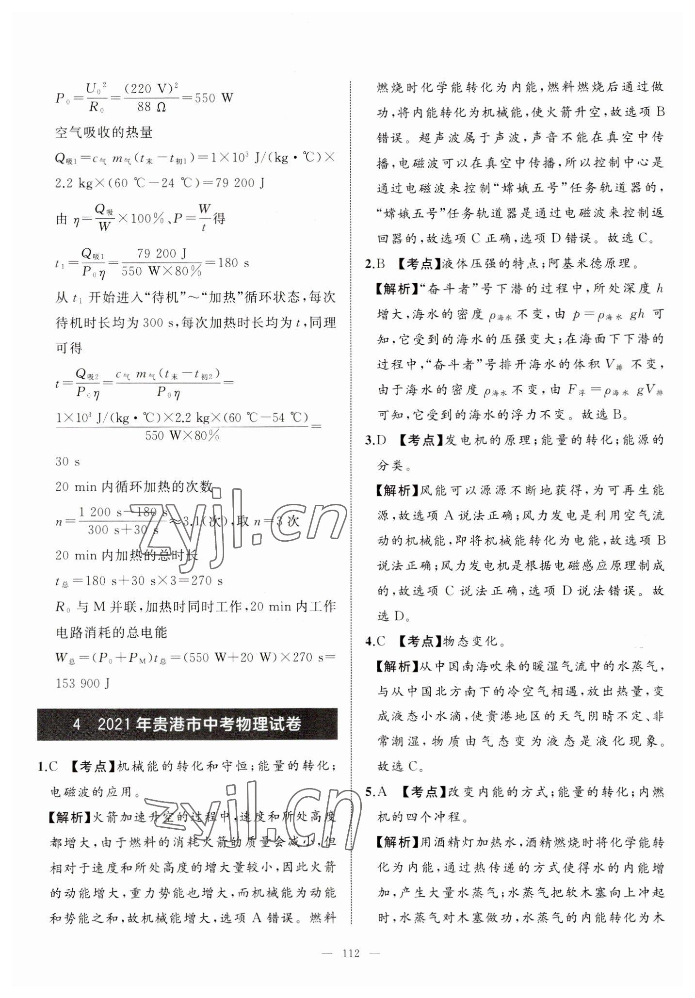 2023年中考备考指南广西2年真题1年模拟试卷物理
