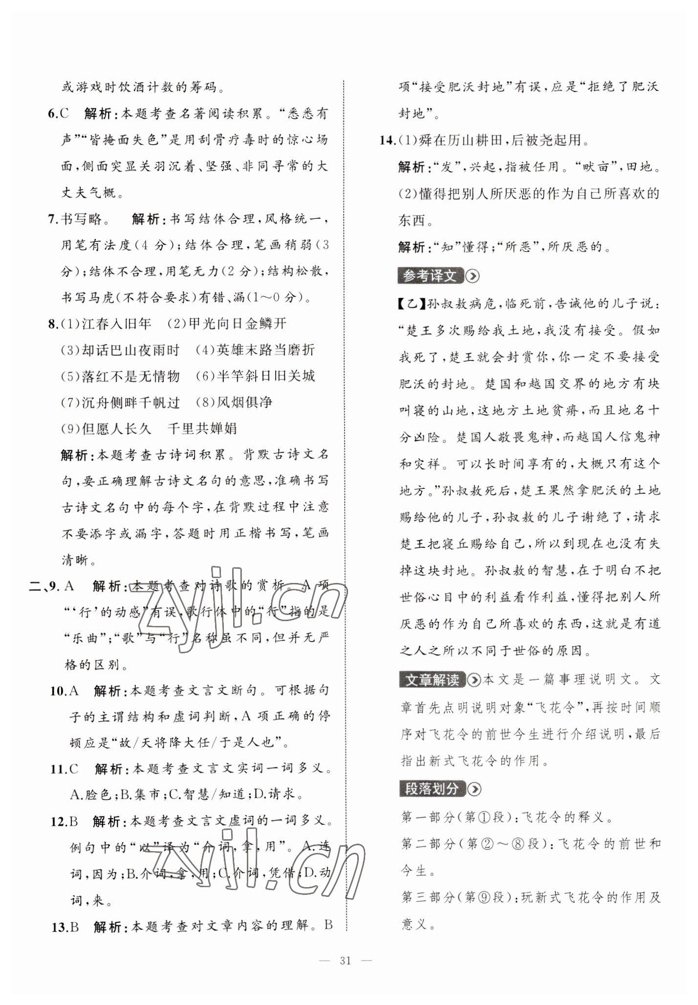 2023年中考备考指南广西2年真题1年模拟试卷语文