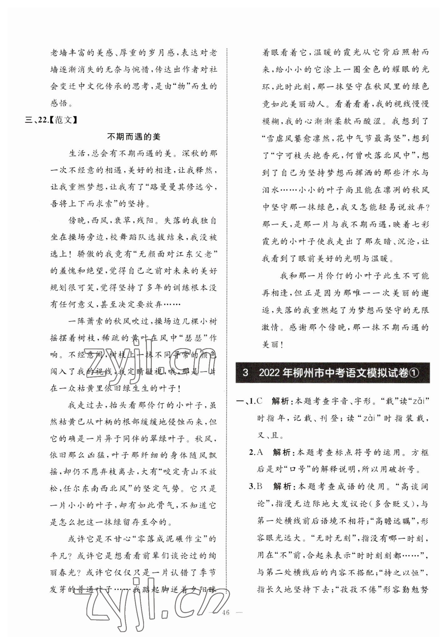 2023年中考备考指南广西2年真题1年模拟试卷语文