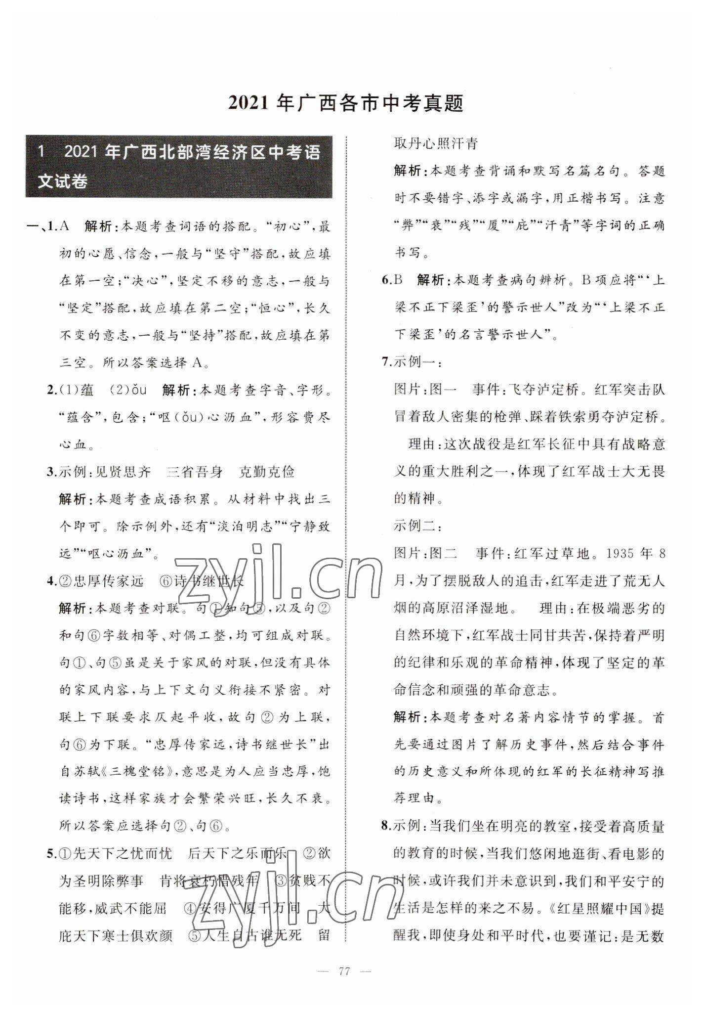 2023年中考备考指南广西2年真题1年模拟试卷语文