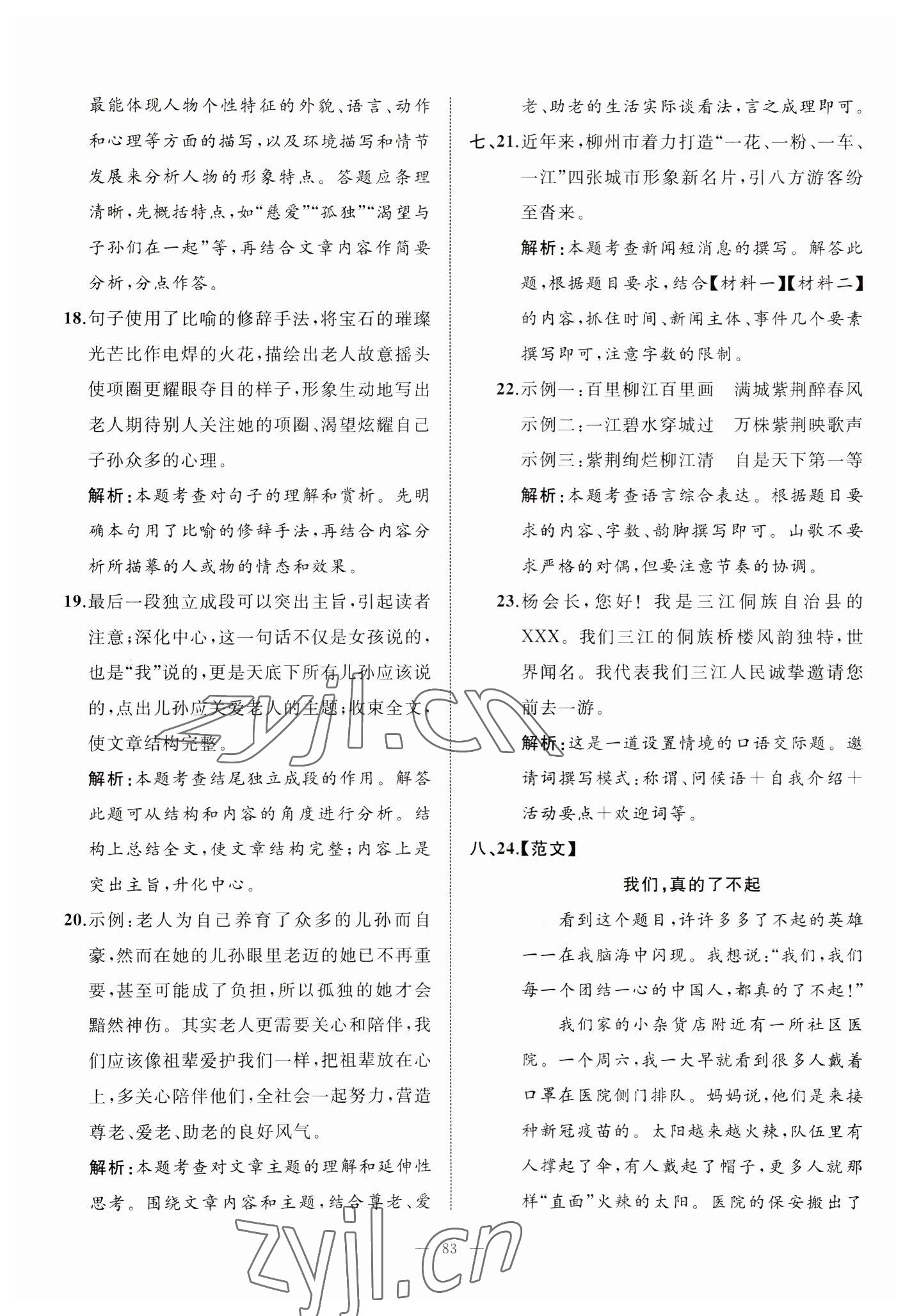 2023年中考备考指南广西2年真题1年模拟试卷语文