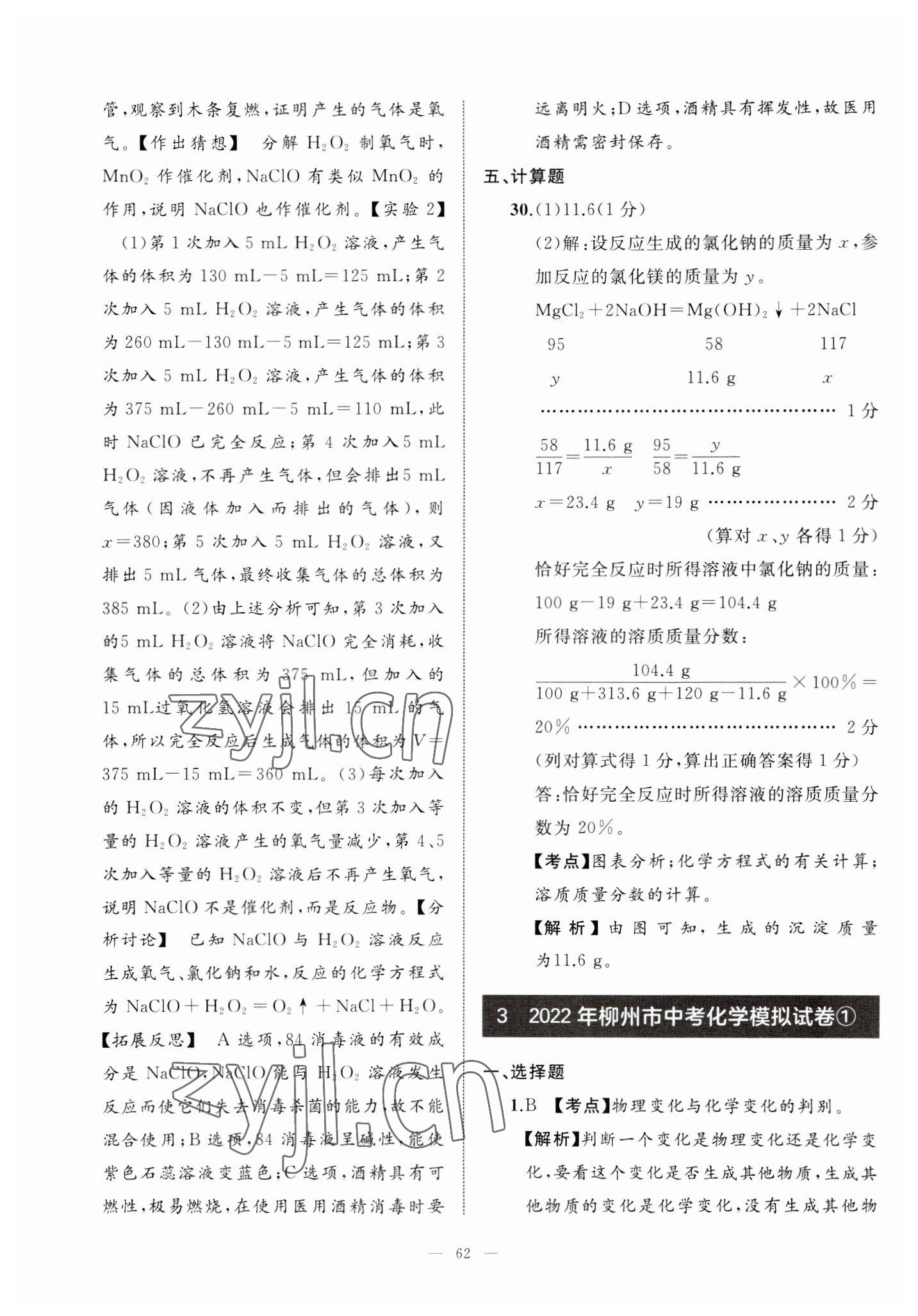 2023年中考备考指南广西2年真题1年模拟试卷化学