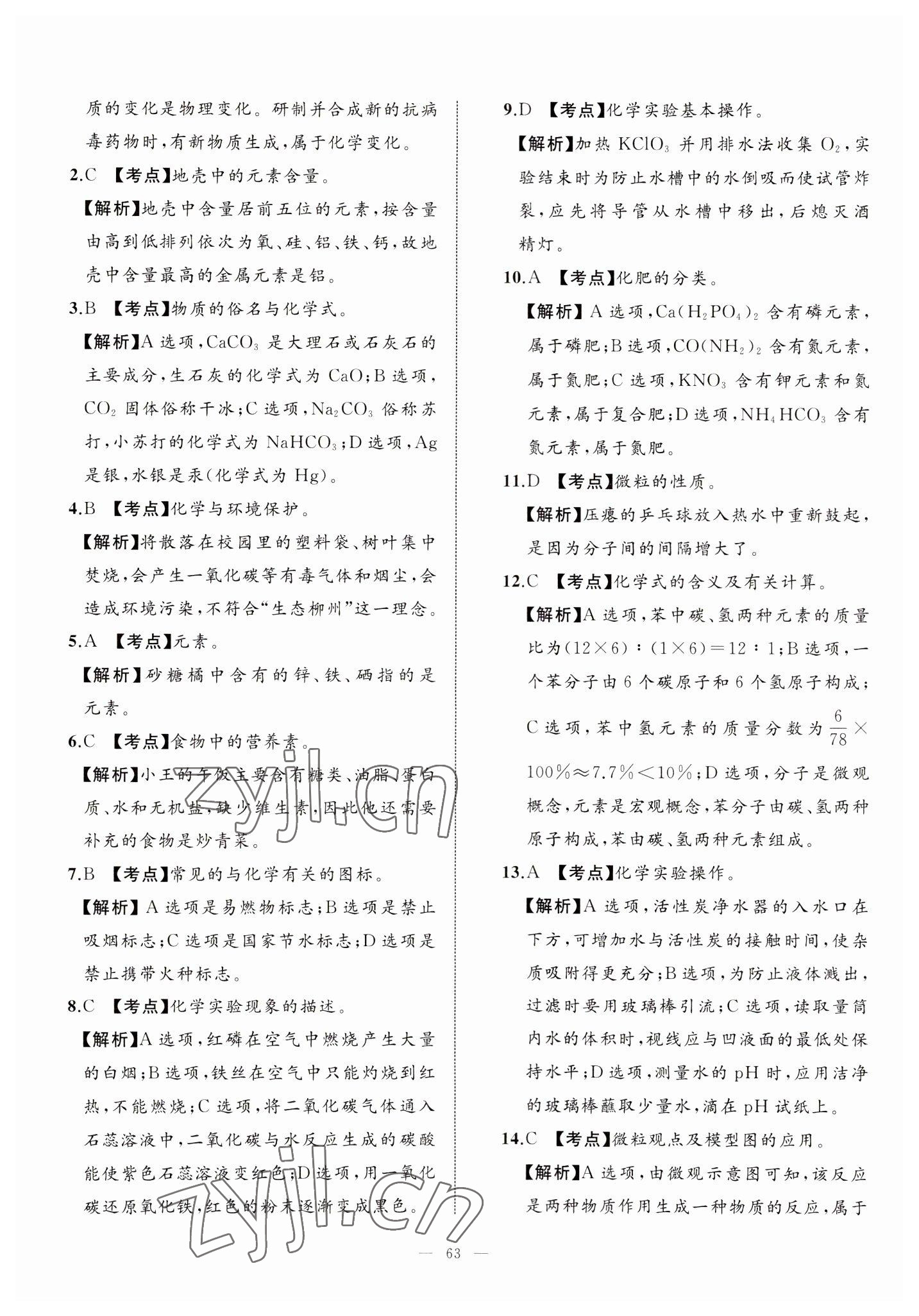2023年中考备考指南广西2年真题1年模拟试卷化学