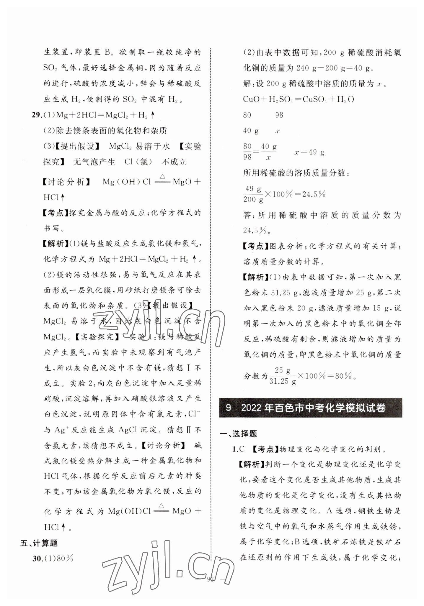 2023年中考备考指南广西2年真题1年模拟试卷化学