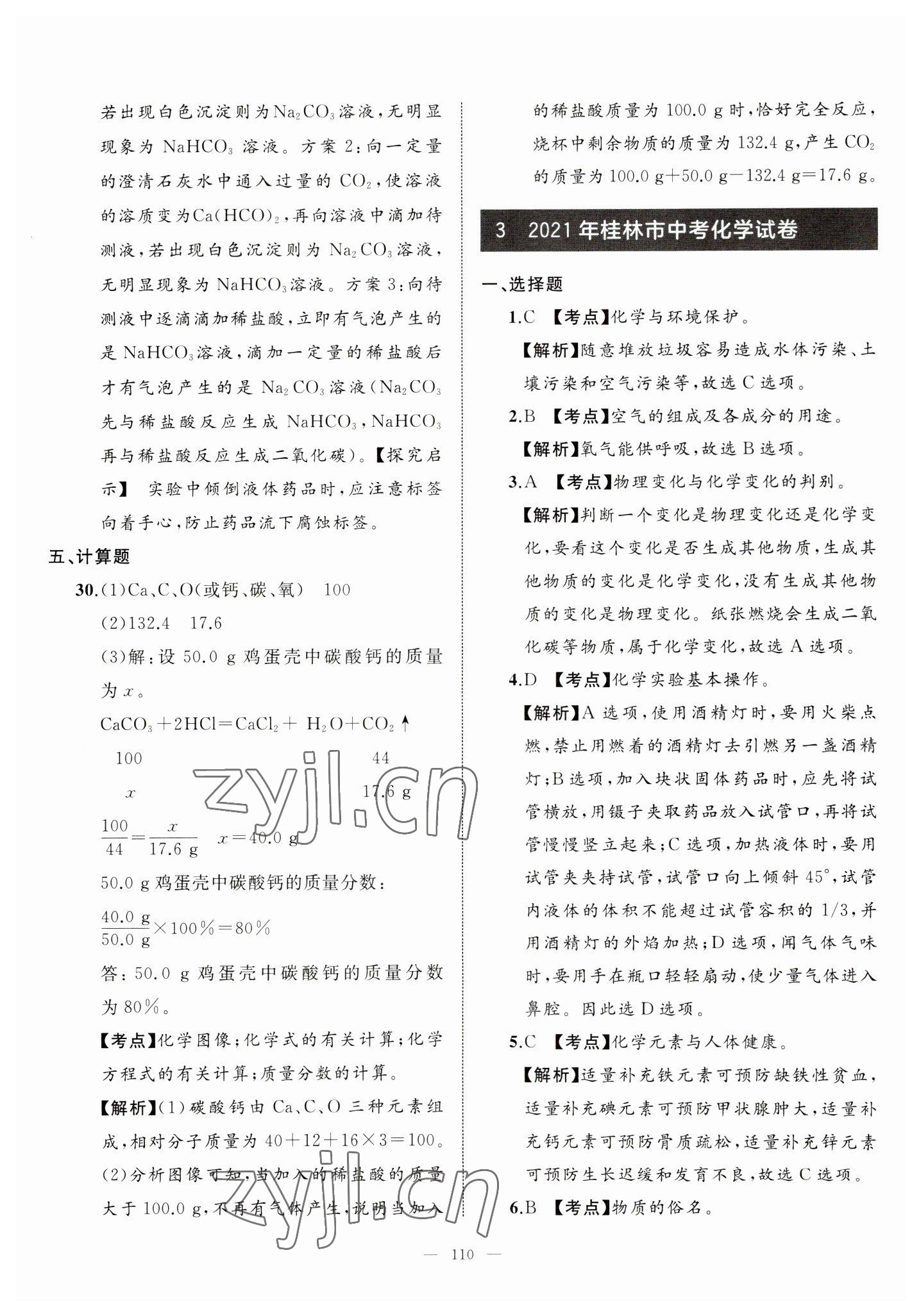 2023年中考备考指南广西2年真题1年模拟试卷化学