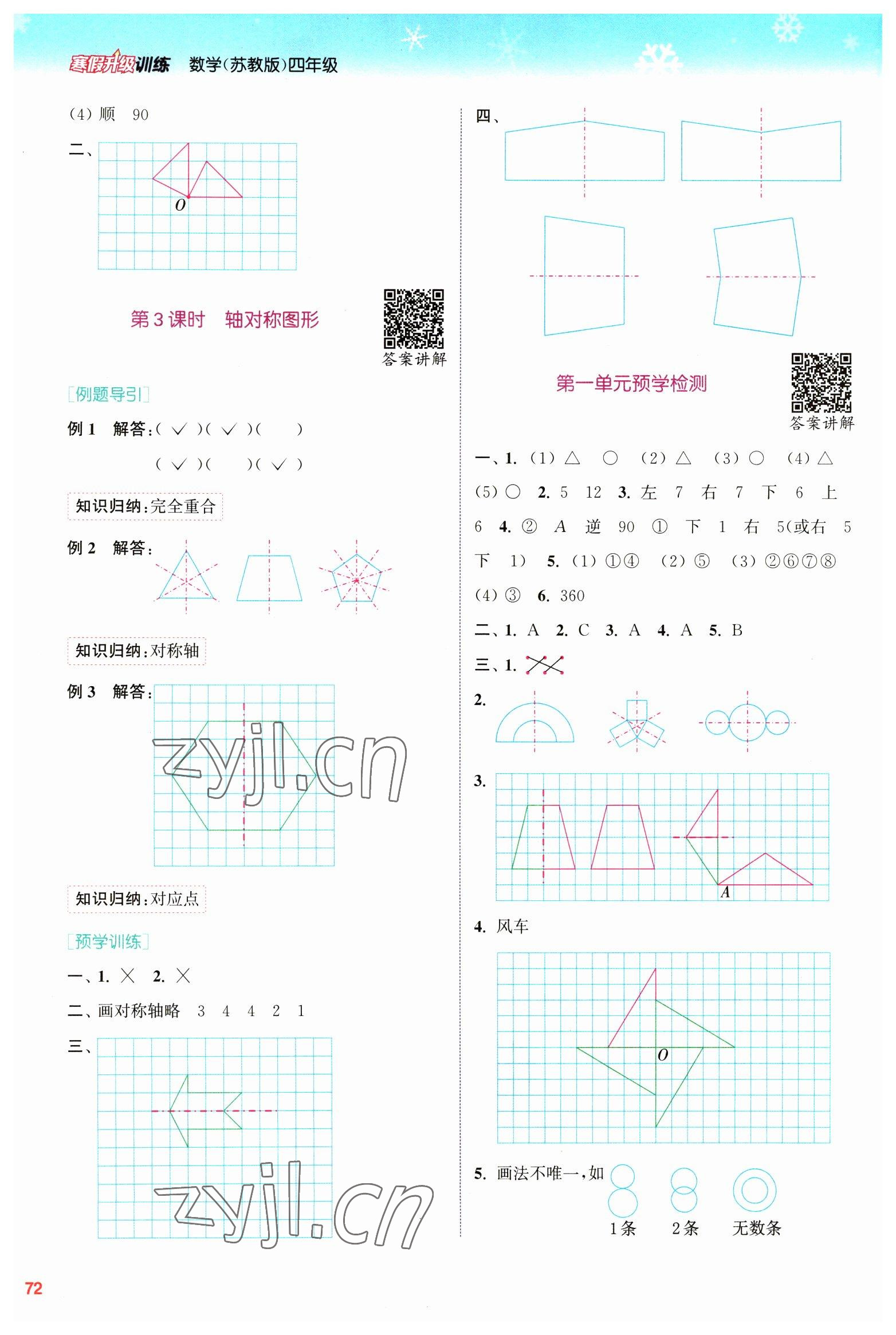 注:目前有些书本章节名称可能整理的还不是很完善,但都是按照顺序排列的,请同学们按照顺序仔细查找。练习册 2023年寒假升级训练浙江教育出版社四年级数学苏教版 答案主要是用来给同学们做完题方便对答案用的,请勿直接抄袭。