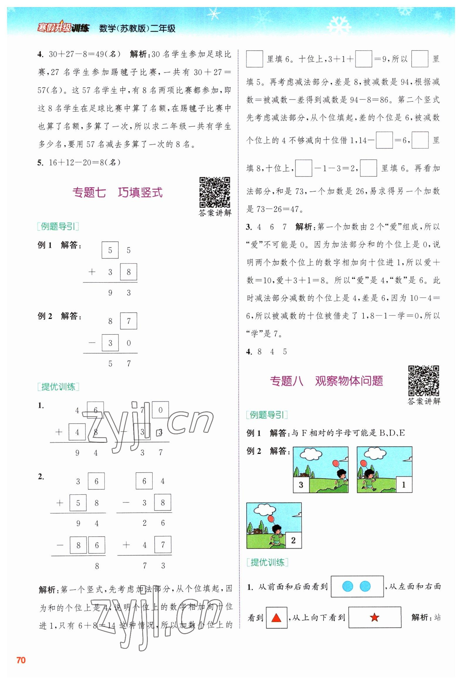 注:目前有些书本章节名称可能整理的还不是很完善,但都是按照顺序排列的,请同学们按照顺序仔细查找。练习册 2023年寒假升级训练浙江教育出版社二年级数学苏教版 答案主要是用来给同学们做完题方便对答案用的,请勿直接抄袭。