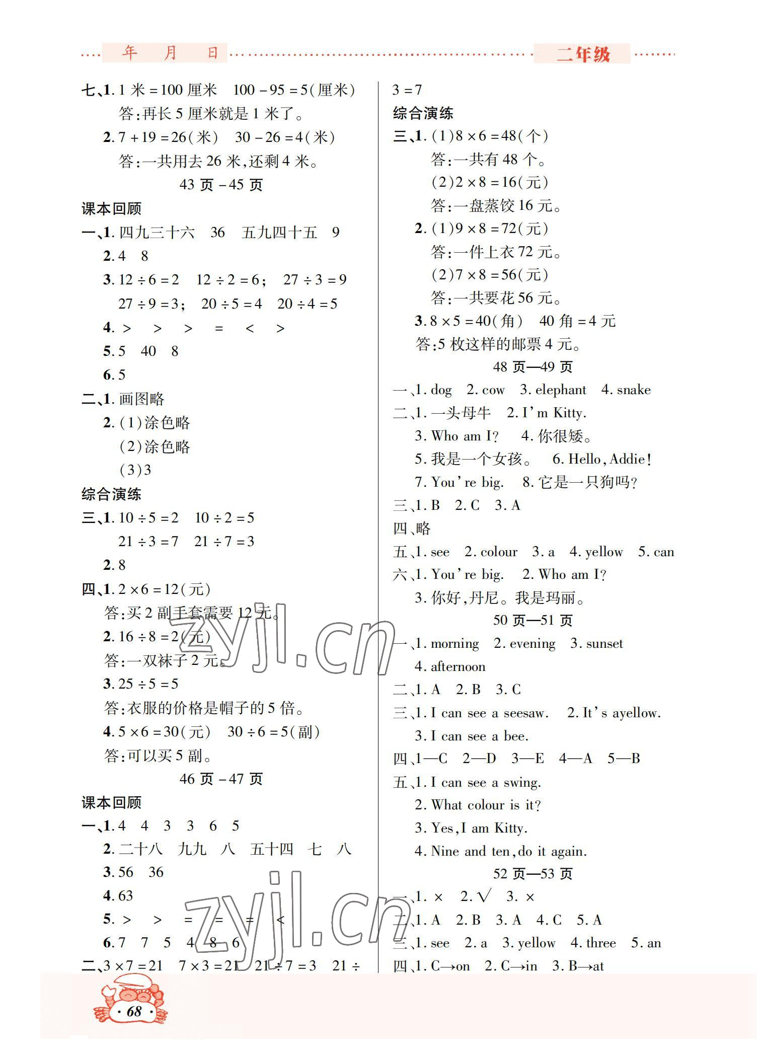 注:目前有些书本章节名称可能整理的还不是很完善,但都是按照顺序排列的,请同学们按照顺序仔细查找。练习册 2023年寒假作业吉林教育出版社二年级含英语 答案主要是用来给同学们做完题方便对答案用的,请勿直接抄袭。