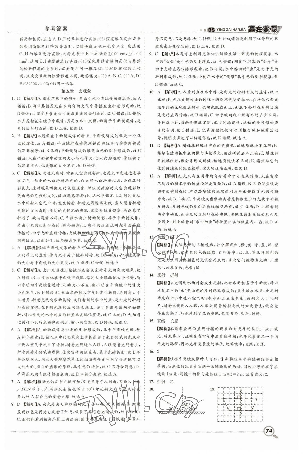 注:目前有些书本章节名称可能整理的还不是很完善,但都是按照顺序排列的,请同学们按照顺序仔细查找。练习册 2023年赢在寒假衔接教材八年级物理北师大版 答案主要是用来给同学们做完题方便对答案用的,请勿直接抄袭。