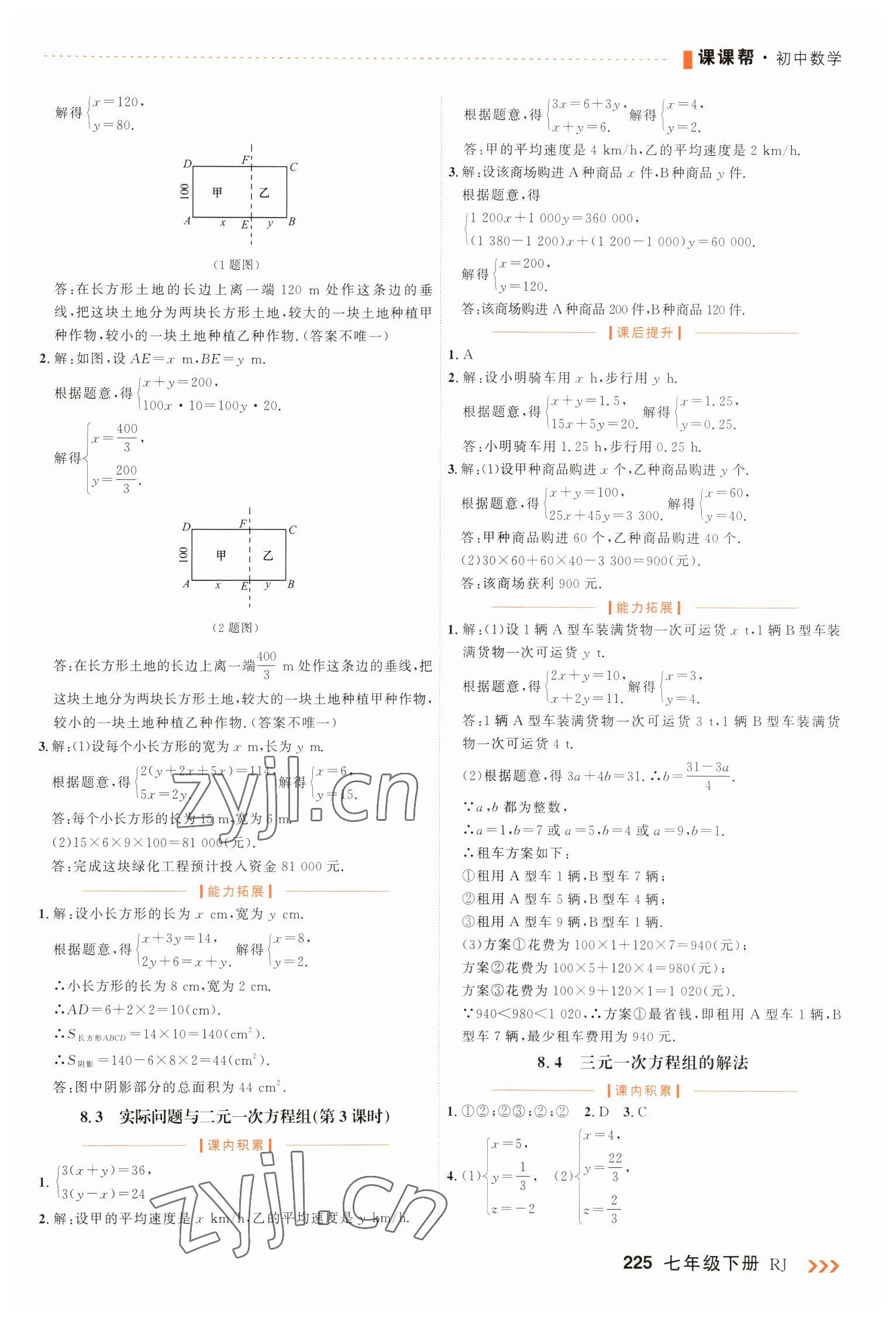 注:目前有些书本章节名称可能整理的还不是很完善,但都是按照顺序排列的,请同学们按照顺序仔细查找。练习册 2023年课课帮七年级数学下册人教版大连专版 答案主要是用来给同学们做完题方便对答案用的,请勿直接抄袭。