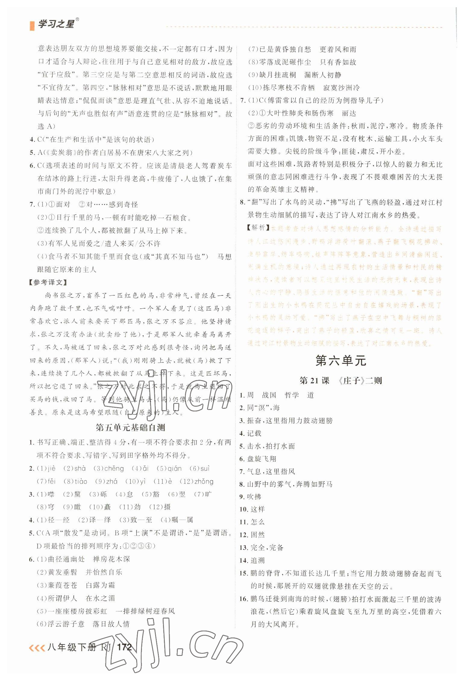 注:目前有些书本章节名称可能整理的还不是很完善,但都是按照顺序排列的,请同学们按照顺序仔细查找。练习册 2023年课课帮八年级语文下册人教版大连专版 答案主要是用来给同学们做完题方便对答案用的,请勿直接抄袭。