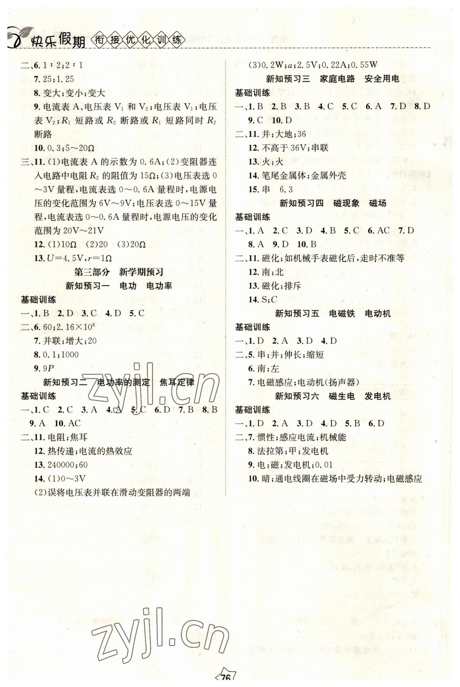 注:目前有些书本章节名称可能整理的还不是很完善,但都是按照顺序排列的,请同学们按照顺序仔细查找。练习册 2023年快乐假期衔接优化训练九年级物理 答案主要是用来给同学们做完题方便对答案用的,请勿直接抄袭。