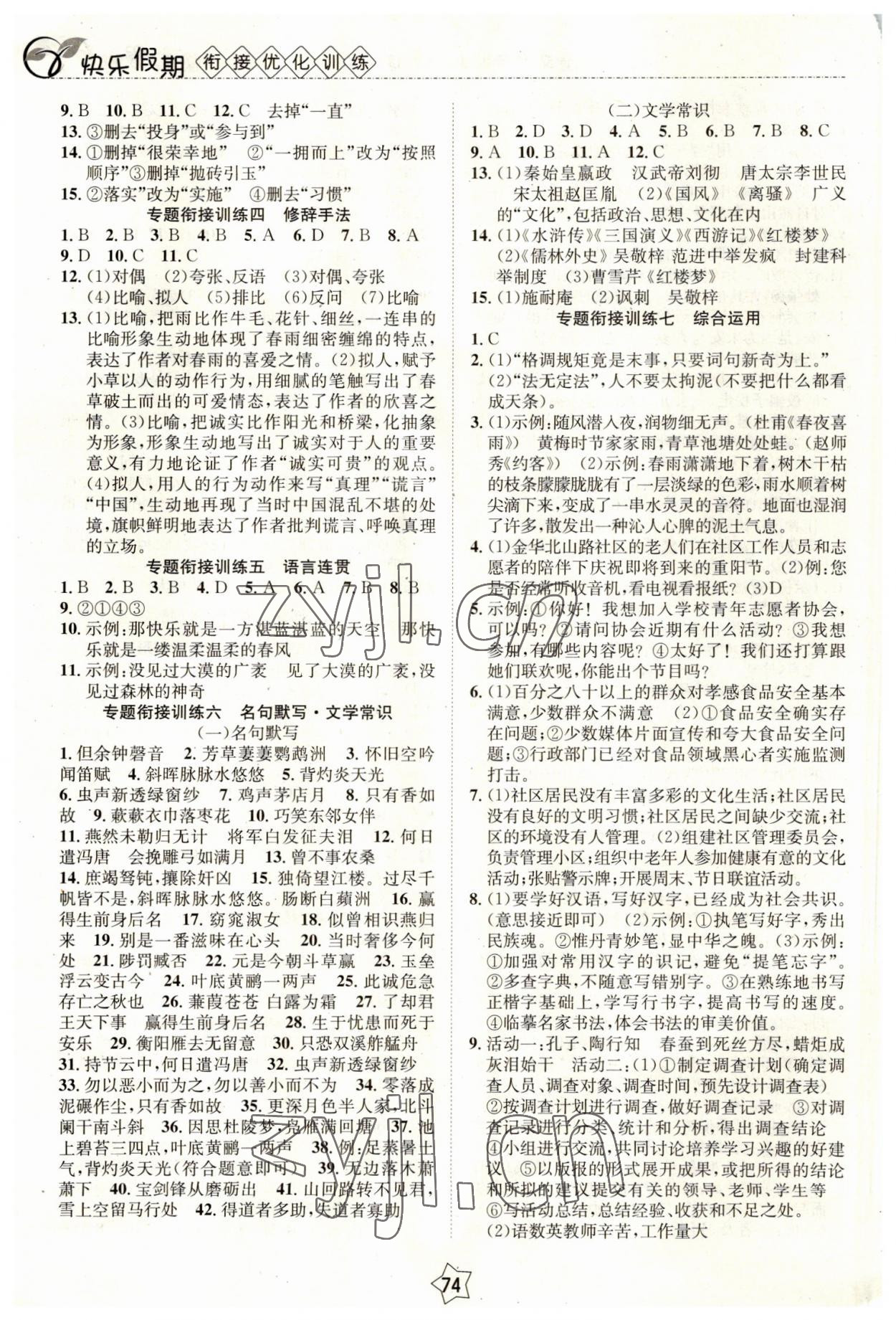 注:目前有些书本章节名称可能整理的还不是很完善,但都是按照顺序排列的,请同学们按照顺序仔细查找。练习册 2023年快乐假期衔接优化训练九年级语文 答案主要是用来给同学们做完题方便对答案用的,请勿直接抄袭。