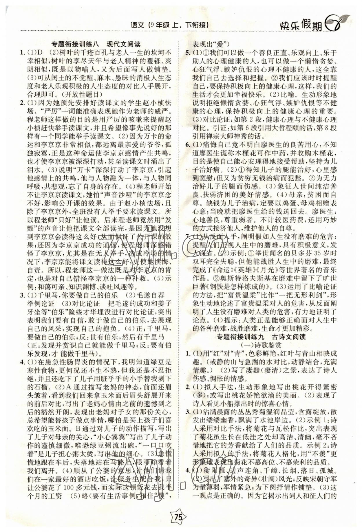 注:目前有些书本章节名称可能整理的还不是很完善,但都是按照顺序排列的,请同学们按照顺序仔细查找。练习册 2023年快乐假期衔接优化训练九年级语文 答案主要是用来给同学们做完题方便对答案用的,请勿直接抄袭。