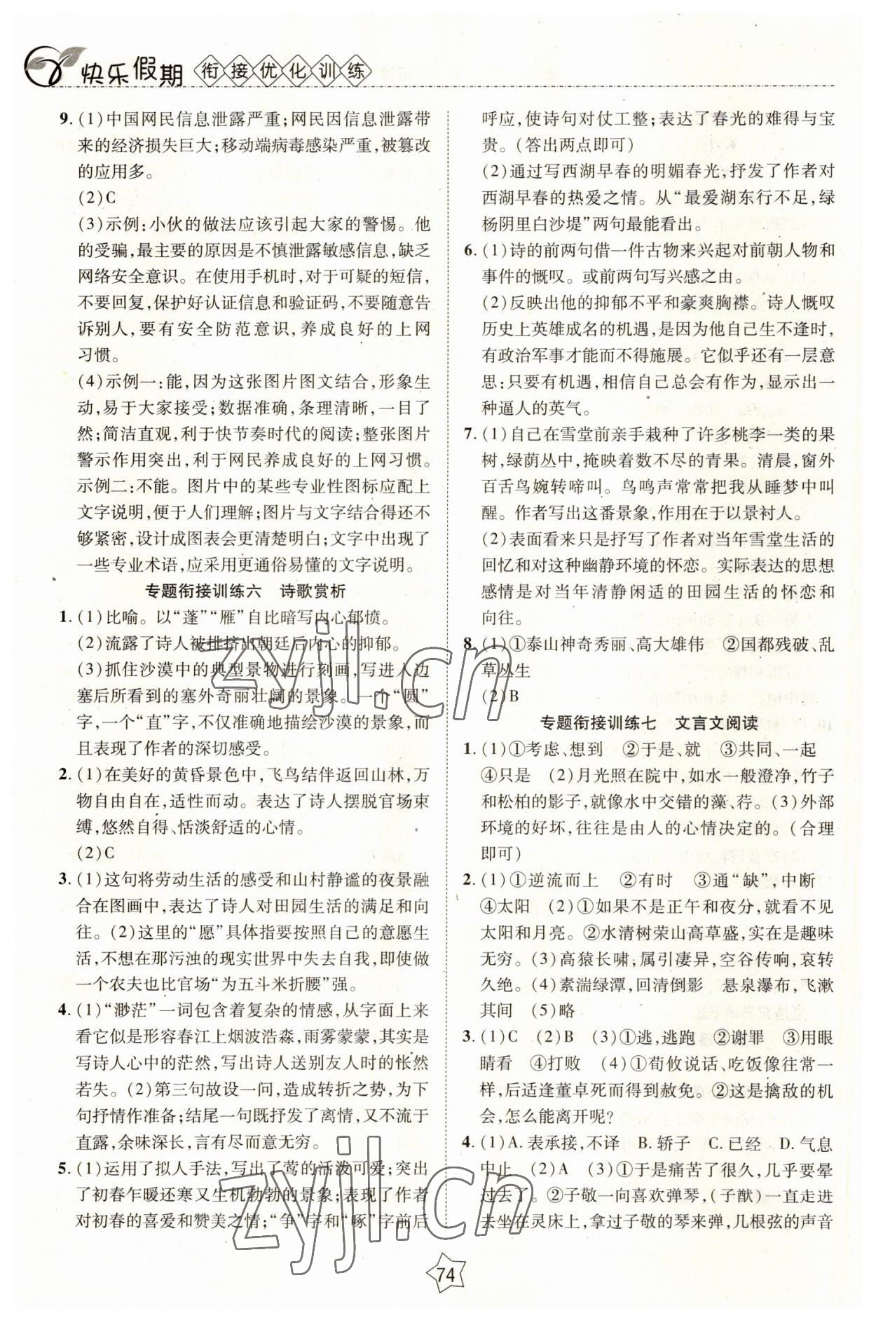 注:目前有些书本章节名称可能整理的还不是很完善,但都是按照顺序排列的,请同学们按照顺序仔细查找。练习册 2023年快乐假期衔接优化训练八年级语文 答案主要是用来给同学们做完题方便对答案用的,请勿直接抄袭。